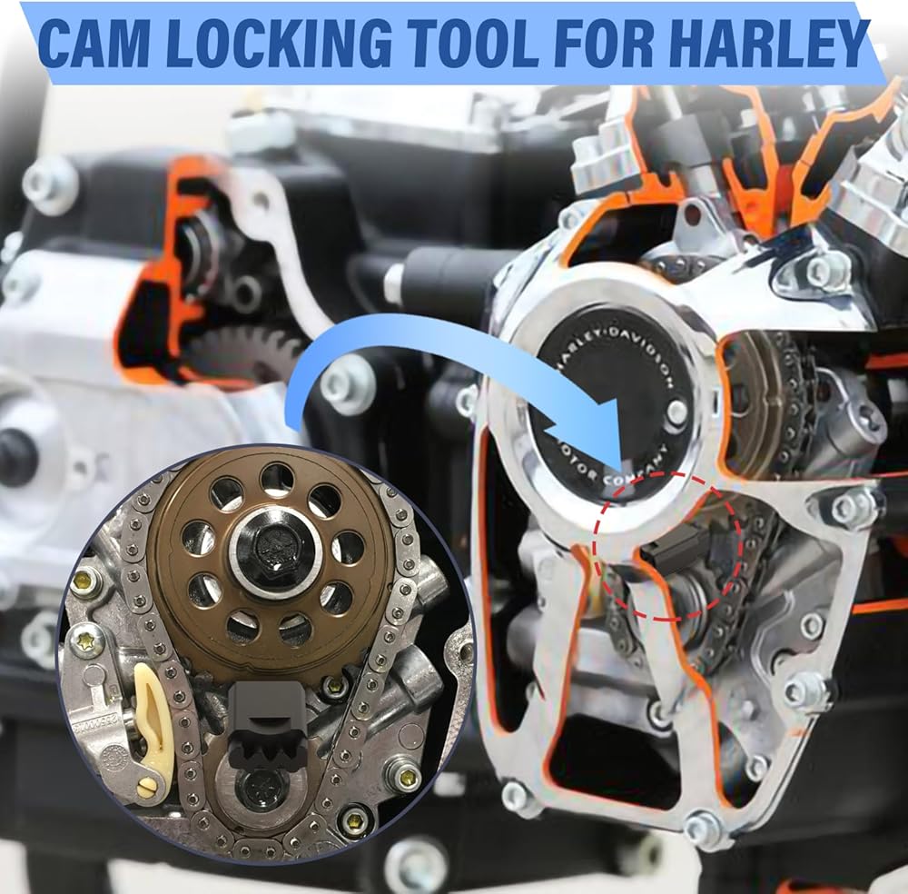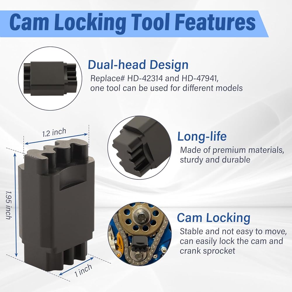 سهلة التركيب: أداة قفل الكاميرا ذات الرأس المزدوج سهلة التركيب والتشغيل. يمكن لمجموعة الأدوات الخاصة بـ Harley قفل عمود الكامات وضرس العمود المرفقي بسهولة، مما يجعل من السهل إزالة مسامير العجلة المسننة واستبدالها وعزم دورانها، مما يحسن بشكل فعال كفاءة صيانة المحرك وإصلاحه