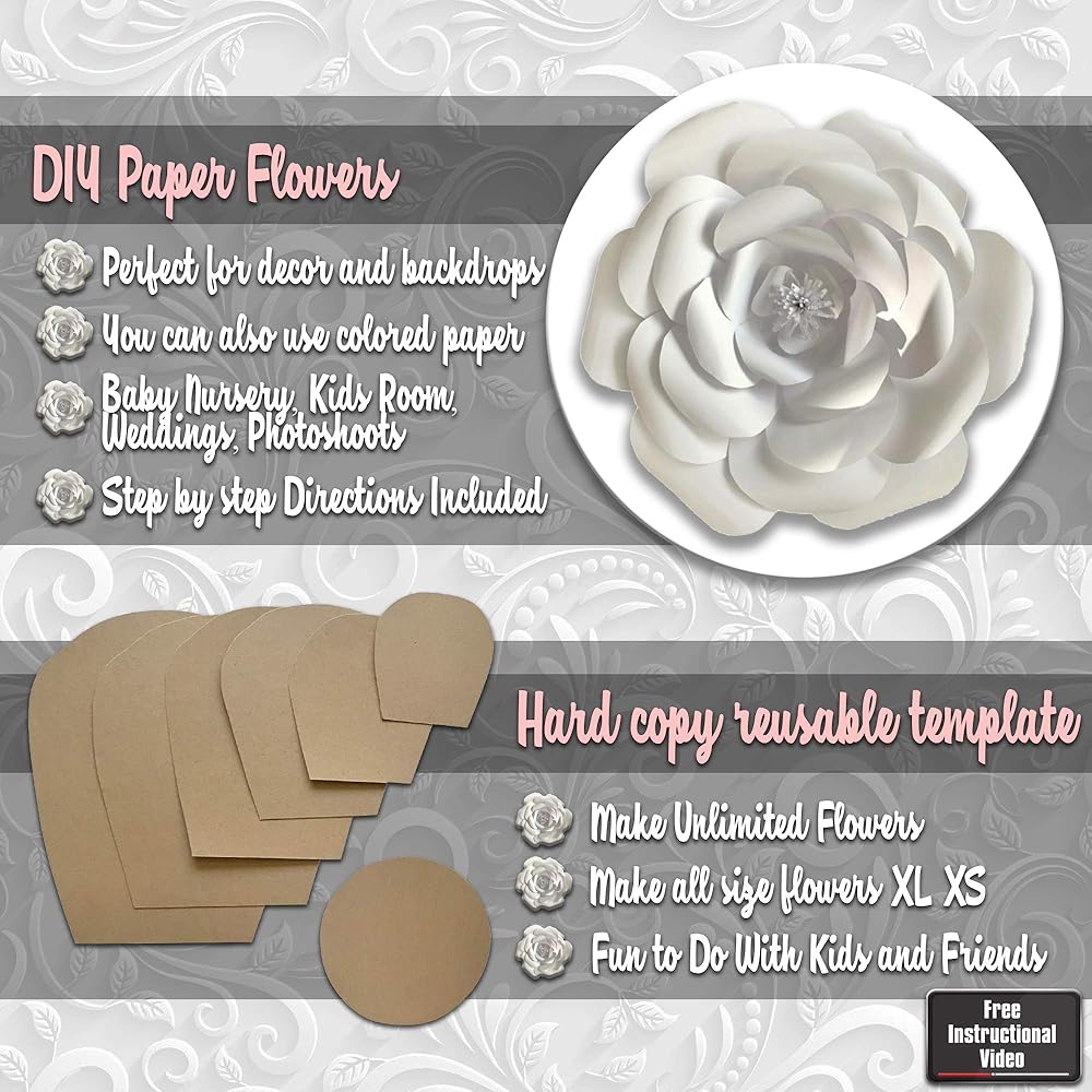 You'll receive a hard copy template to make the paper flower of choice as well as step-by-step instructions. Paper instructions and video links are included to make these flowers simply. You can make all size flowers XL-XS and as many as you want! Use over and over again for all kinds of projects: Photoshoots, Backdrops, Home Wall Decor, Newborn Photography, the options are endless! You can also use colored paper and/or spray paint them! *Not included is the paper you need to create your own flowers, as well as a pencil, scissors and glue gun!