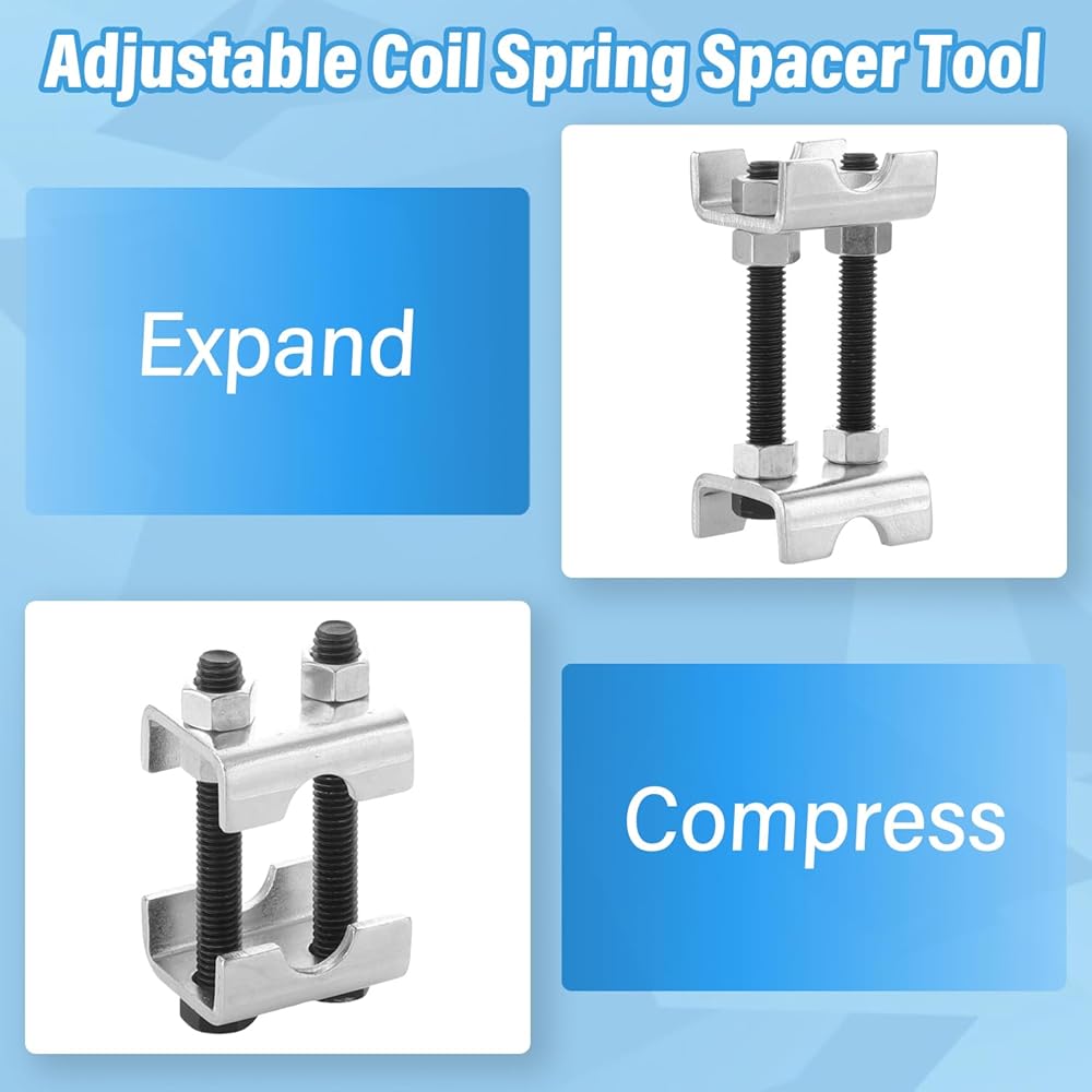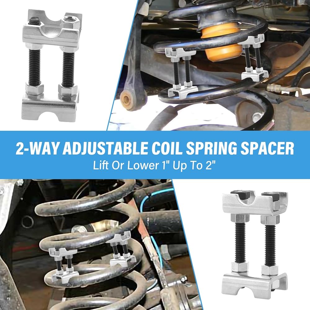 2-WAY ADJUSTABLE: The coil spring compression tool consists of adjustable coil spring prop and spring washer that supports expansion and compression. 2-way adjustable lift 1 inch to 2 inches