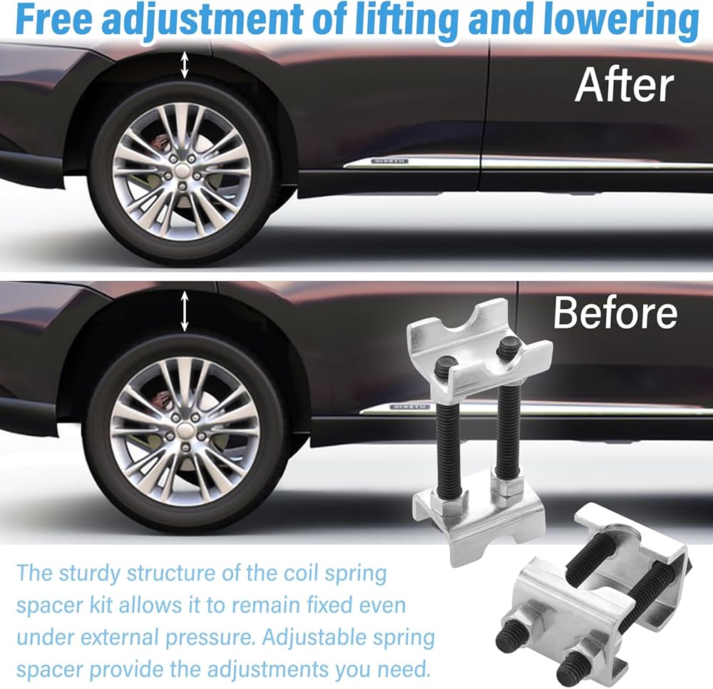 PREMIUM QUALITY: This Coil Spring Spacer kit includes 2 pcs spring washers made of high-quality carbon steel material, with a sturdy structure that is not easily deformed or bent.The anti rust and anti-corrosion properties maximize the driving experience
