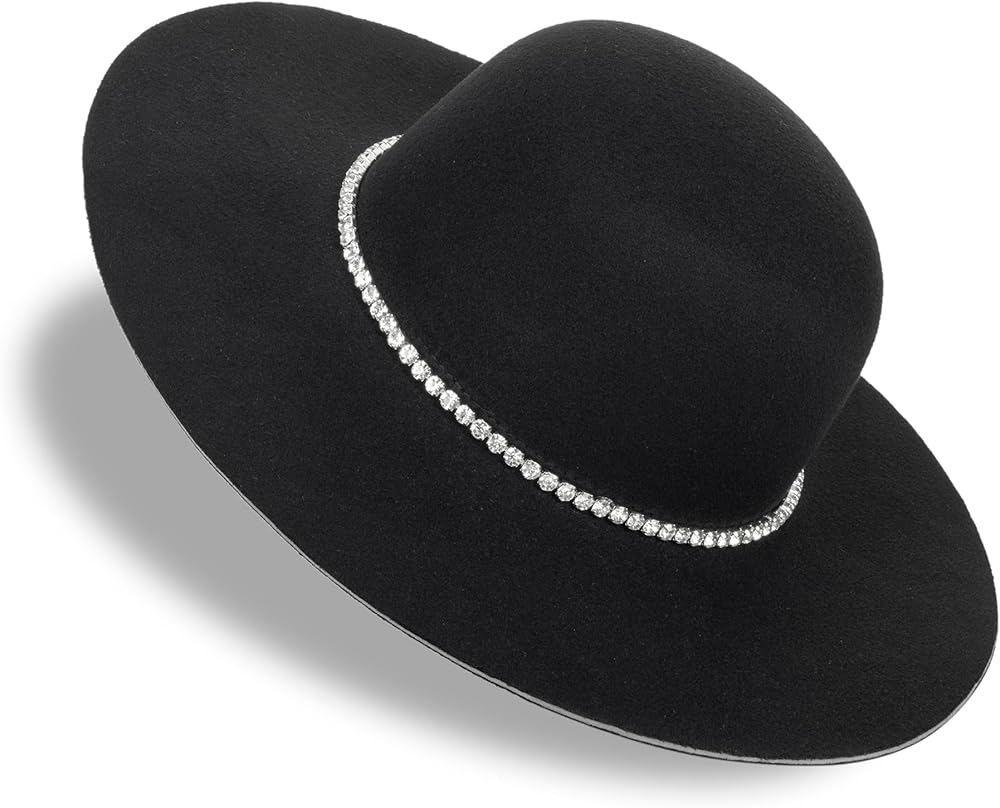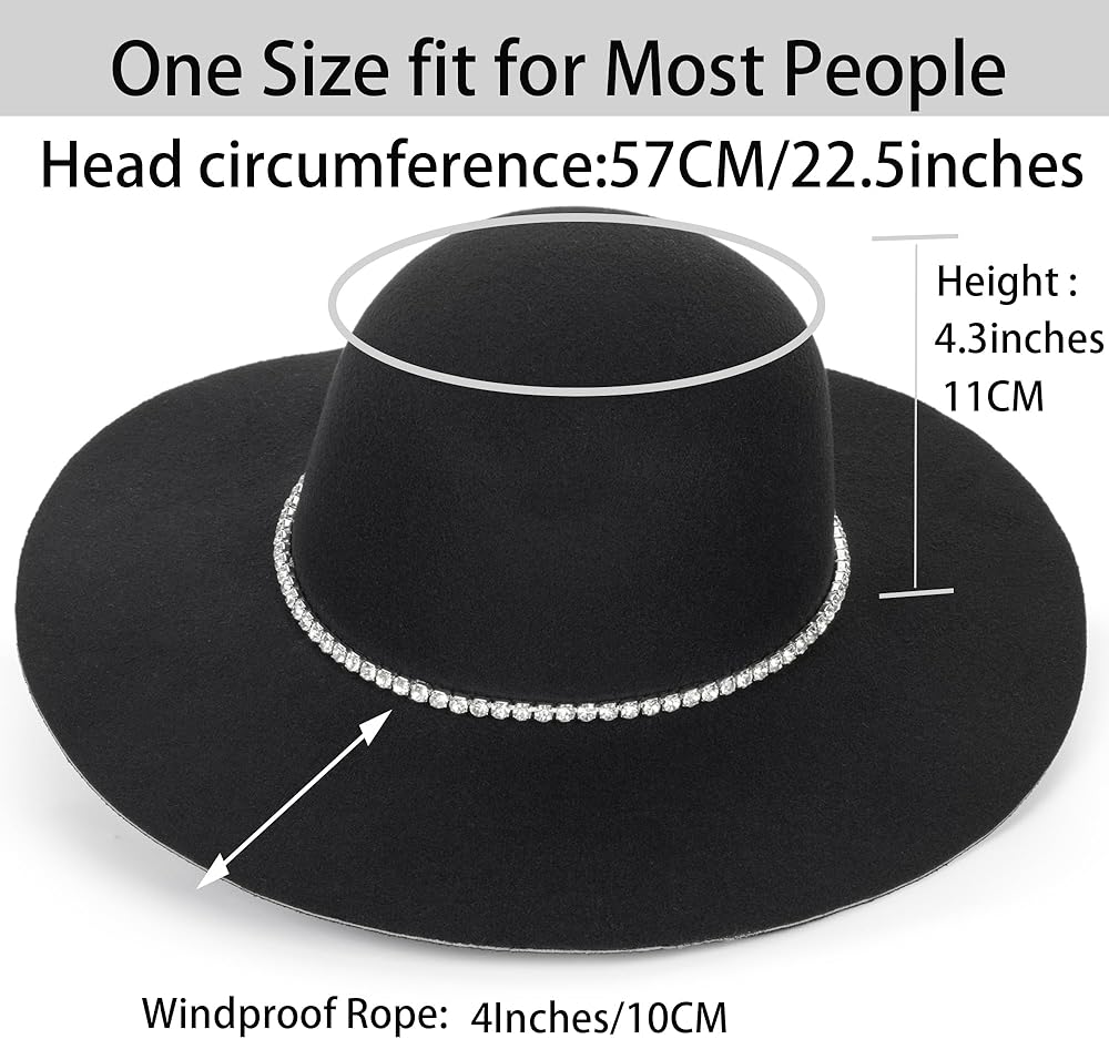 • قبعة فيدورا باللون الأسود مع حجر الراين، تجعلها أكثر راحة عند ارتدائها. عصري ومريح ومسامي وناعم للارتداء طوال اليوم.