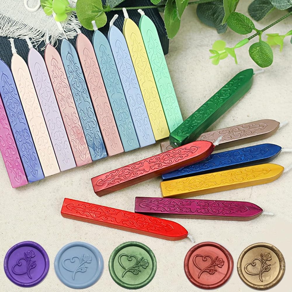 ONWINPOR Retro Sealing Wax Sticks with Wicks for Wax Seal Stamp Multiple colors for your choice: white, gold, red, silver, blue, pink, puple, green, black etc. These retro color sealing wax sticks are suitable for Christmas gift sealing, hobby, DIY craft projects, sealing wine bottle, graduation ceremony, Various festivals, tea or cosmetics packaging. Ideal for decorating wedding and party invitations, envelopes, parcels. No need candles any more. Wax Sealing is also a perfect way to personalize handmade cards and letters. Best chioce for someone who love the wax sealing. Specification Package Includes: 10 Pieces Sealing Wax Sticks Wax Seal Sticks Size: 9 x 1.2 x 1.2cm/3.54'' x 0.47'' x 0.47'' Retro Sealing Wax Sticks Antique Totem Pattern Classic and Romantic More Beautiful and Shiny Feature: Antique Totem Pattern Classic and Romantic More Beautiful and Shiny Use Steps as following 1. Lighting the wax seal stick, and hold it tilt the wax stick at 45 degrees to allow the flame to come in contact with the wax and melt with the heat. 2. Drop the melted sealing wax onto the surface/item ready to be sealed. 3. Put your wax seal stamp on the melted sealing wax. 4. Wait for the sealing wax to cool completely, and remove the wax stamp, your wax seal is complete.