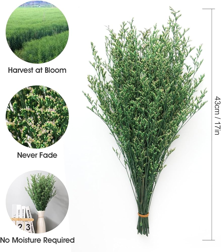 Dried Preserved Caspia Limonium Statice Flower Bouquets 17 Inch 4.5OZ DIY Arrangements for Vase, Home Decoration Photo Props Party and Weddings, Craft(Green)