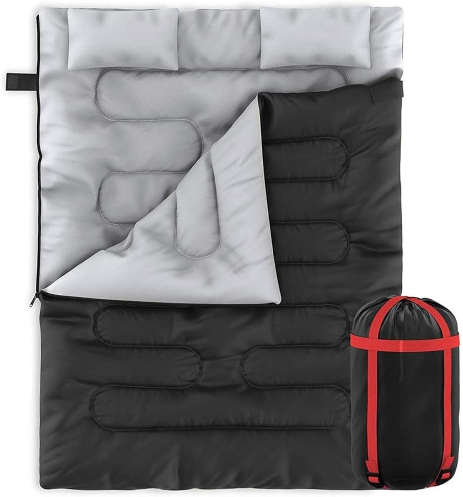 Zone Tech Double Camping Sleeping Bag with 2 Pillows – 3-4 Season Lightweight Waterproof Warm & Cool Weather Adult & Kids Sleeping Bag Converts into 2 Single -Camping, Hiking, & Outdoors
