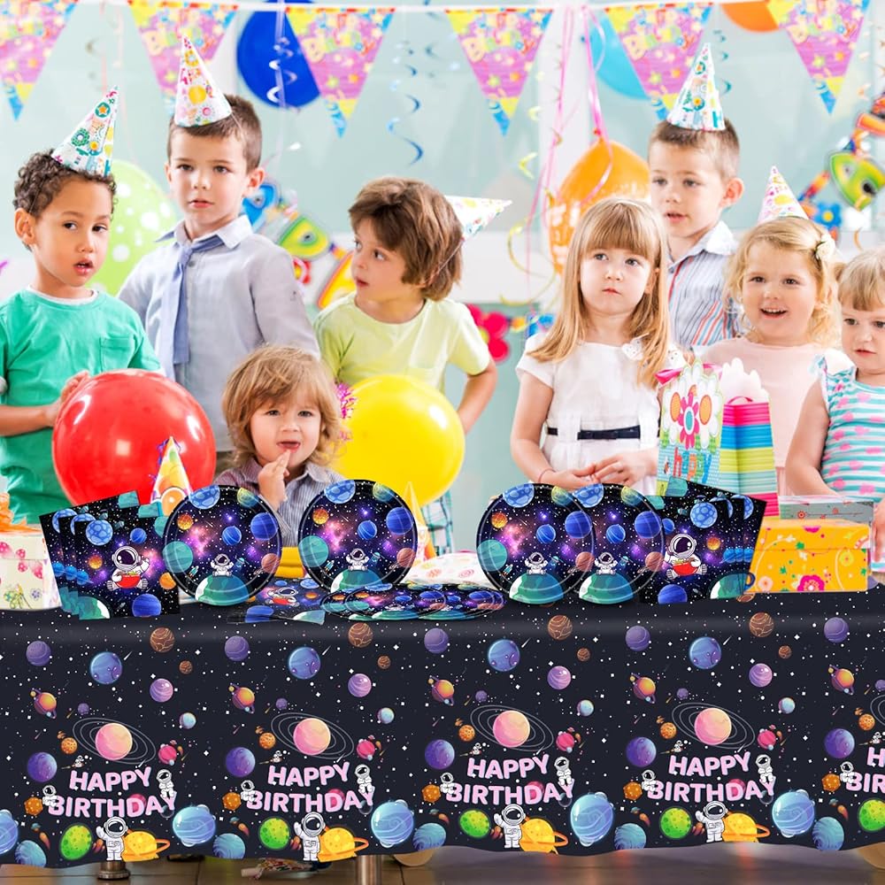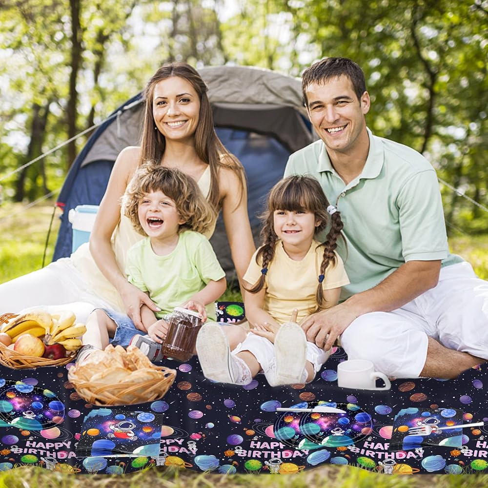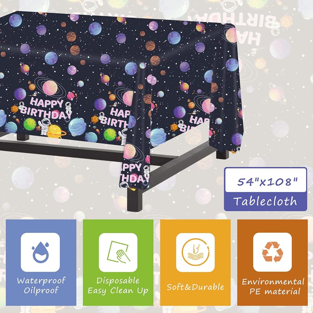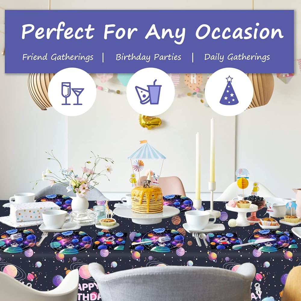 🪐【No Need To Clean】This birthday party supplies is a disposable product. After the party is over, you just need to roll the tablecloth and throw it away. They can quickly clean up the desktop. You don't need to clean it separately.