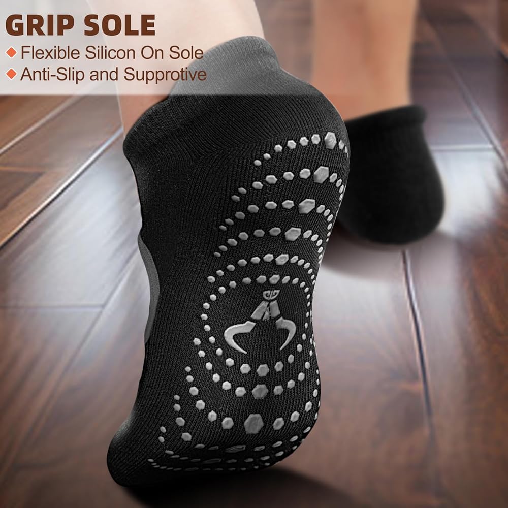 نعل للإمساك - تمتع بقبضة استثنائية ومقاومة للانزلاق مع جواربنا التي تتميز بتصميم خاص من السيليكون اللاصق. مثالية لمختلف الرياضات والتمارين الداخلية، مما يضمن السلامة والثبات؛