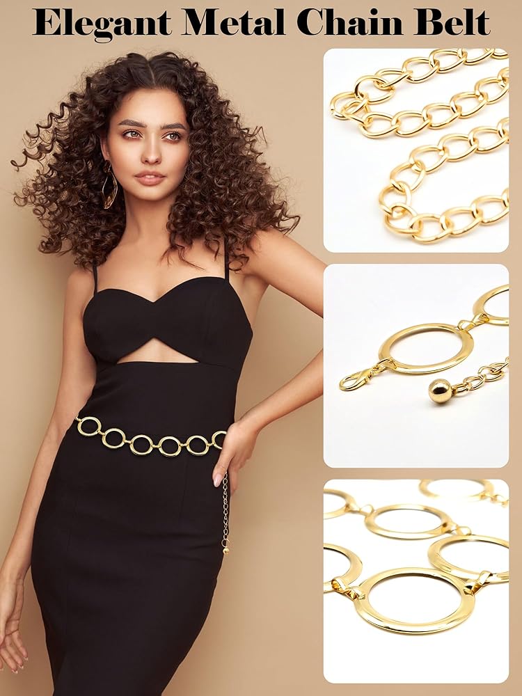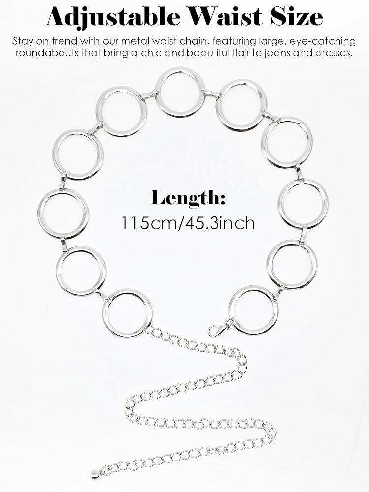 حزام خصر معدني قابل للتعديل: مصمم لتعزيز الصورة الظلية، حزام الخصر المصنوع من خليط معدني يلتف بشكل مريح حول الخصر مع سلسلة تمديد قابلة للتعديل وإبزيم مخلب سرطان البحر من سبيكة معدنية. يعتبر الحزام الدائري أو المزخرف على شكل قلب مناسبًا لمعظم النساء والفتيات.