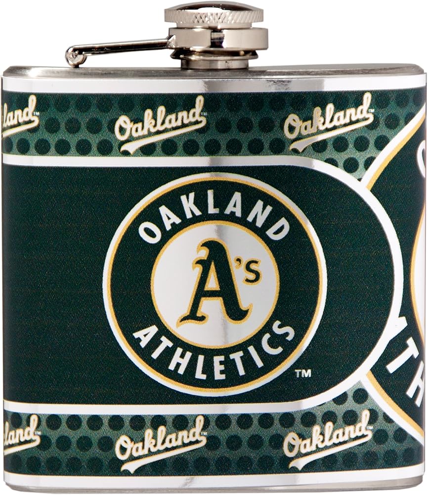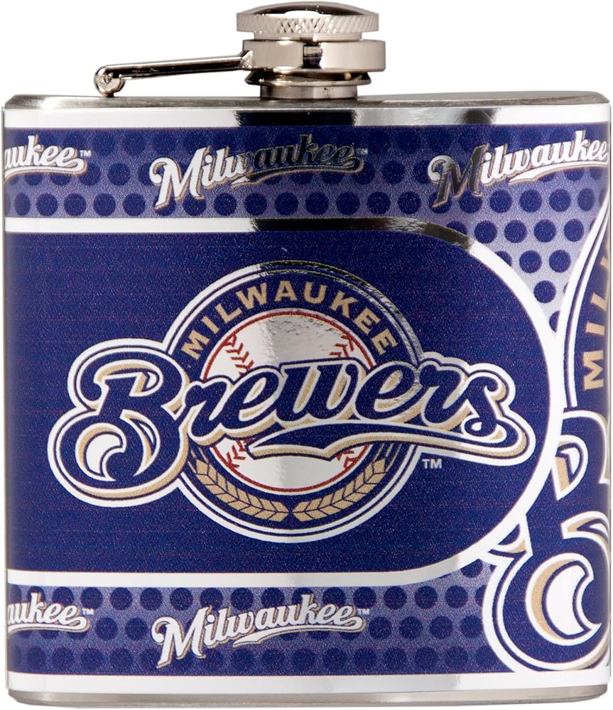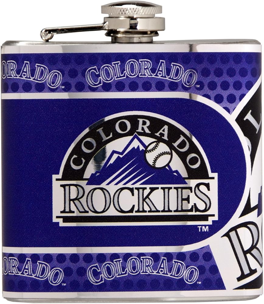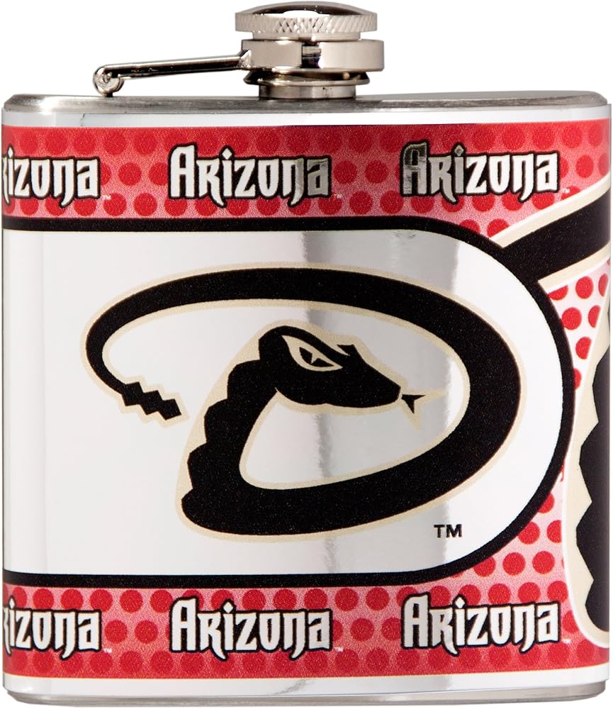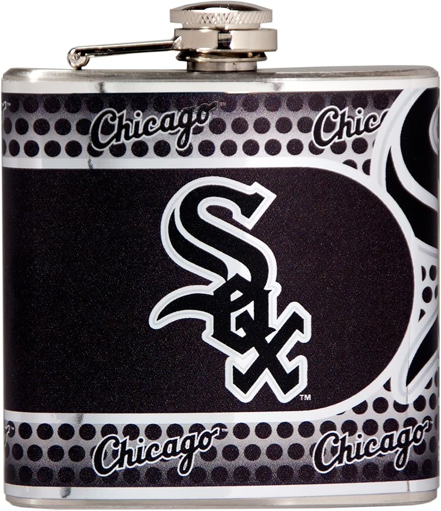 Great American Products MLB Stainless Steel Hip Flask with Metallic Graphics, 6-Ounce, Silver