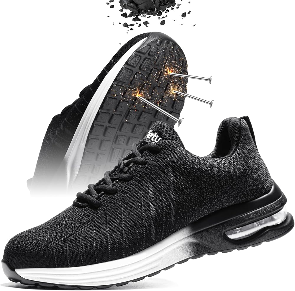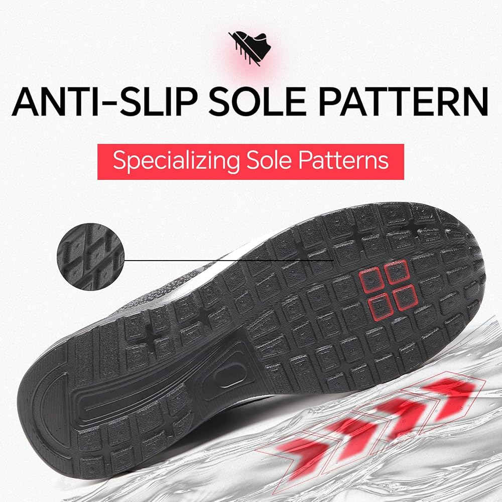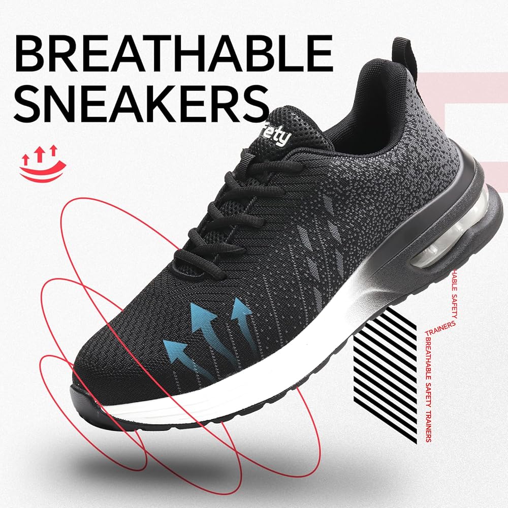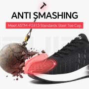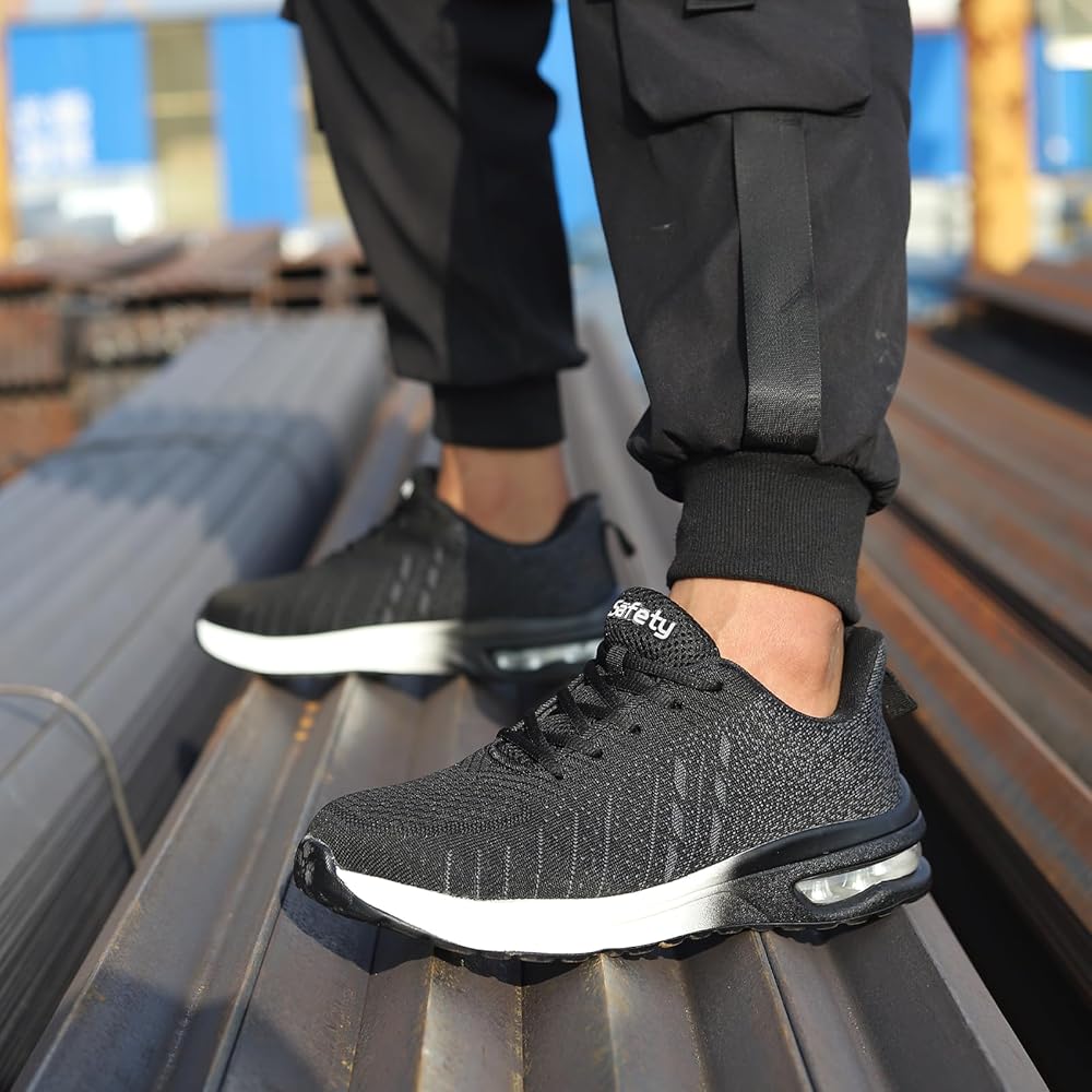 أمان معزز مع غطاء صلب لأصابع القدم: مصمم بغطاء صلب لأصابع القدم يتجاوز معايير ASTM F2413-18، توفر هذه الأحذية الرياضية ذات الأصابع الفولاذية حماية استثنائية، وتحمي قدميك من الصدمات المحتملة ومخاطر الضغط، وتتجاوز متطلبات السلامة القياسية.