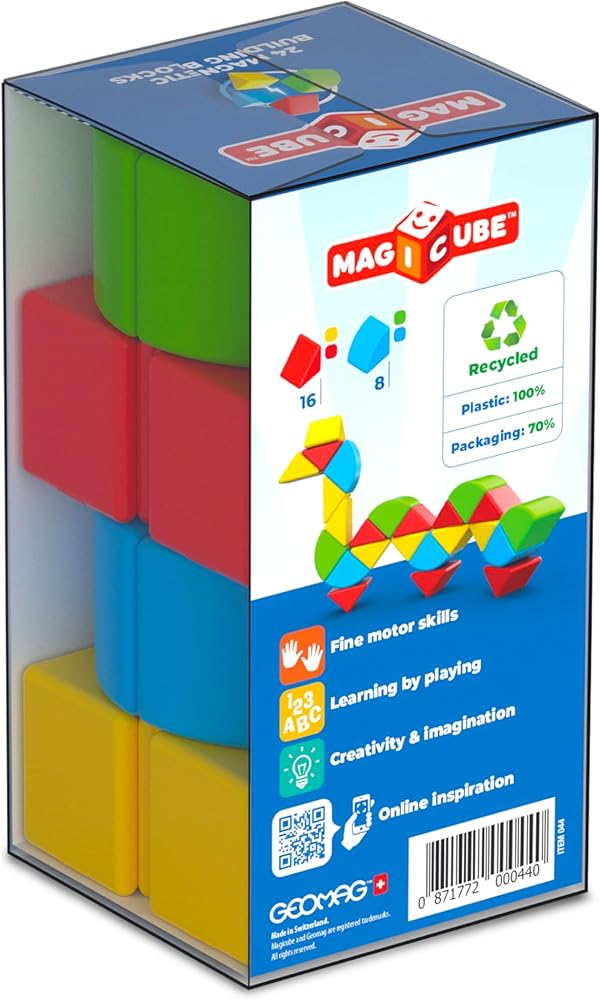 مجموعة الكتل المغناطيسية Geomag MagiCube المكونة من 24 قطعة للأطفال الصغار والأطفال من سن 1 إلى 5 سنوات | لعبة تعليمية سويسرية الصنع مصنوعة من البلاستيك المعاد تدويره بنسبة 100% | اللعب الإبداعي للتعليم المبكر