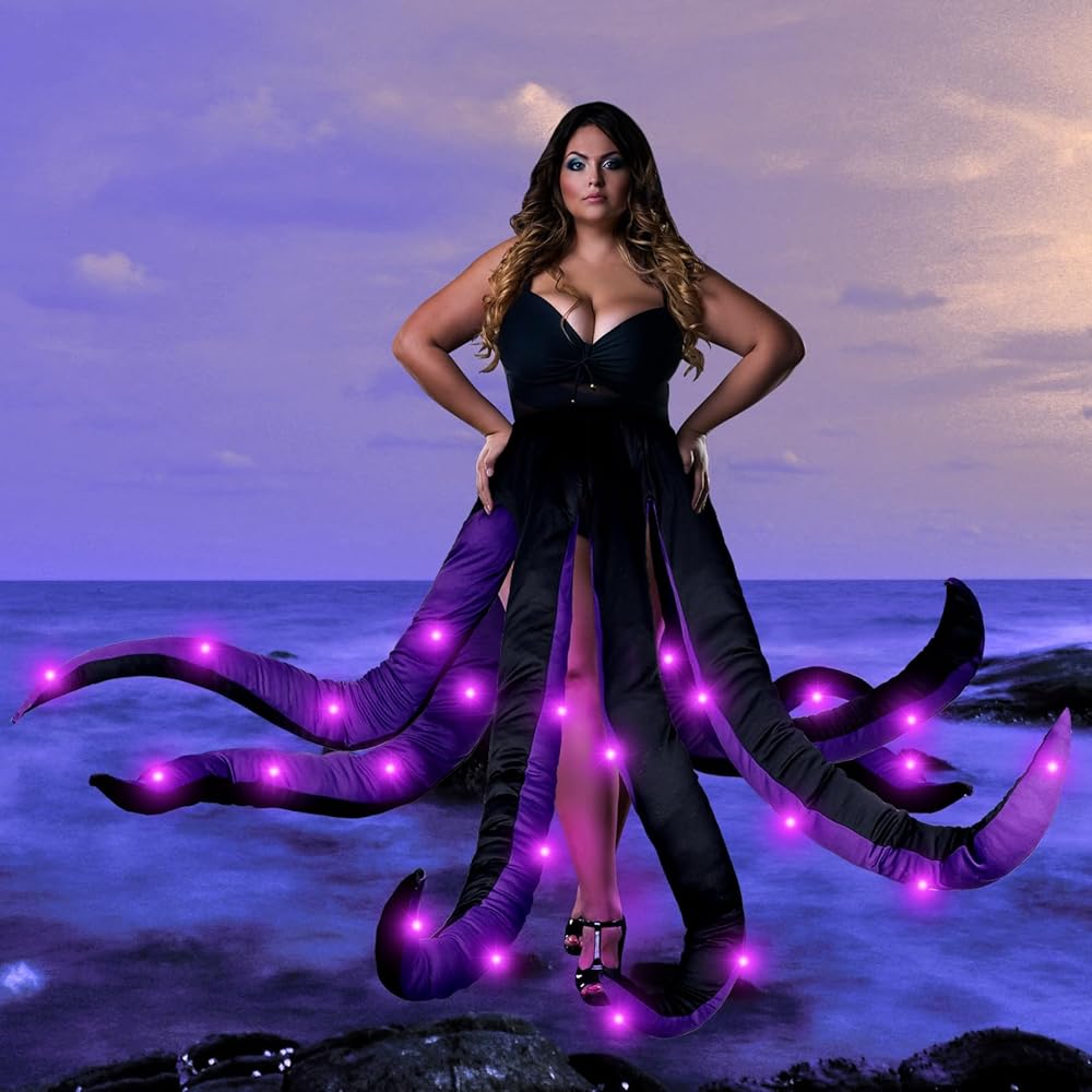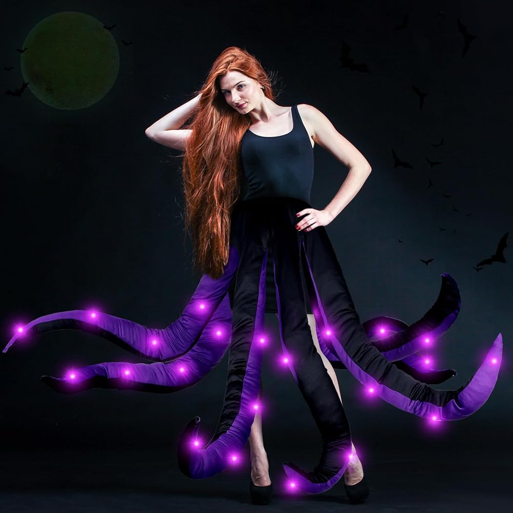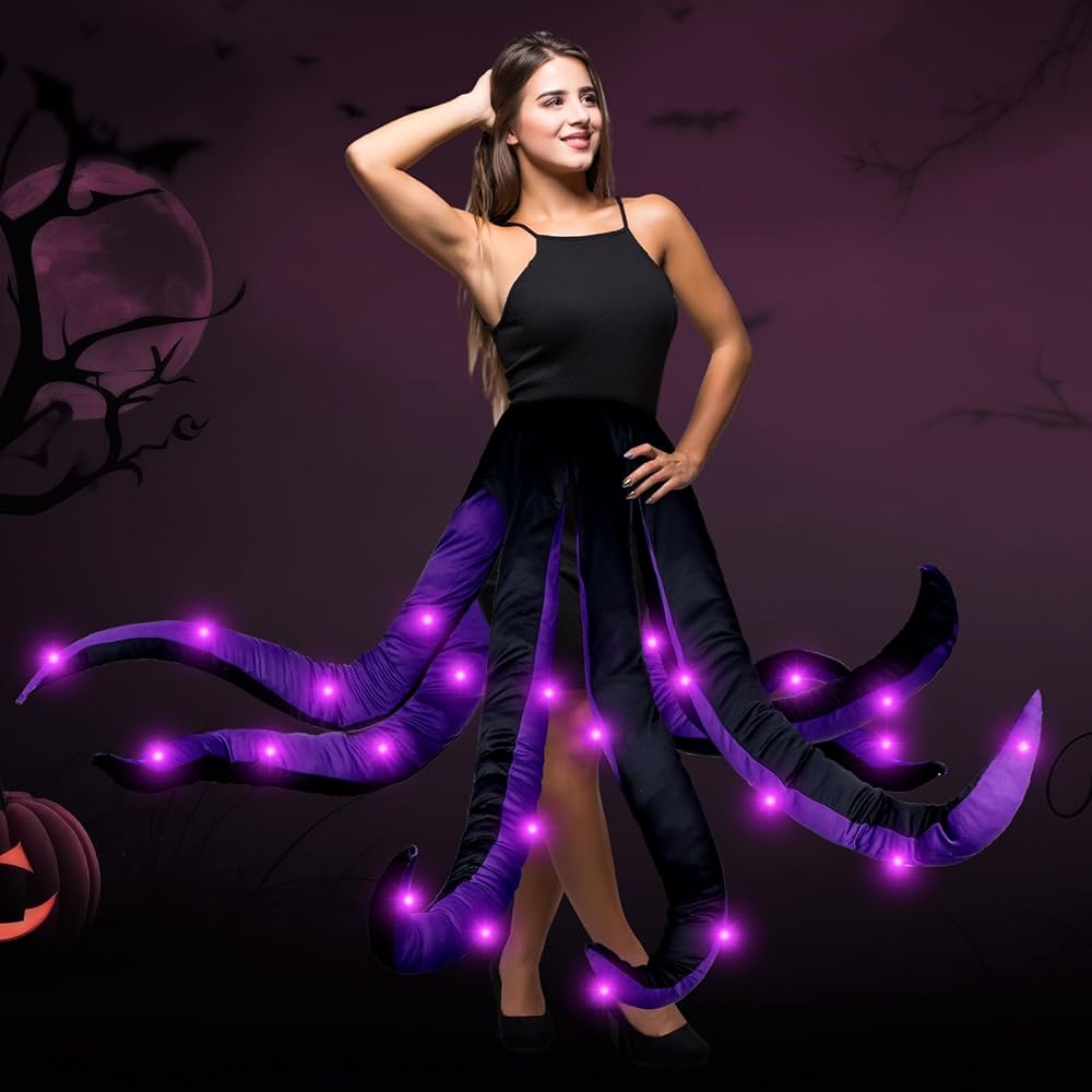 زي الأخطبوط النسائي مع الضوء، تنورة مخالب الأخطبوط الأرجواني للبالغين زي حورية البحر الشرير الساحرة التأثيرية