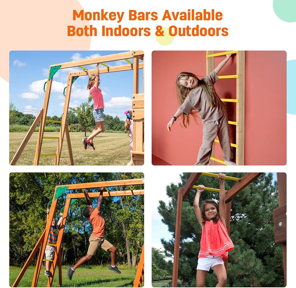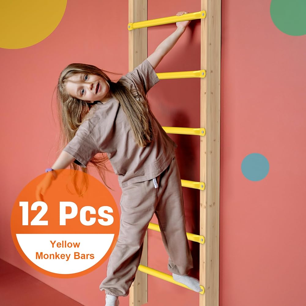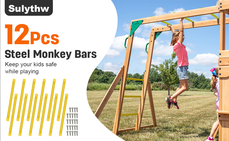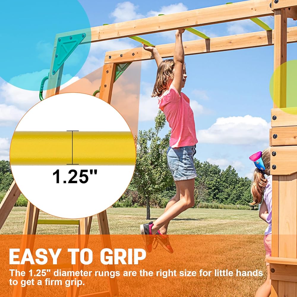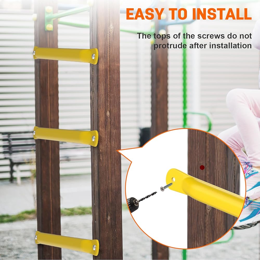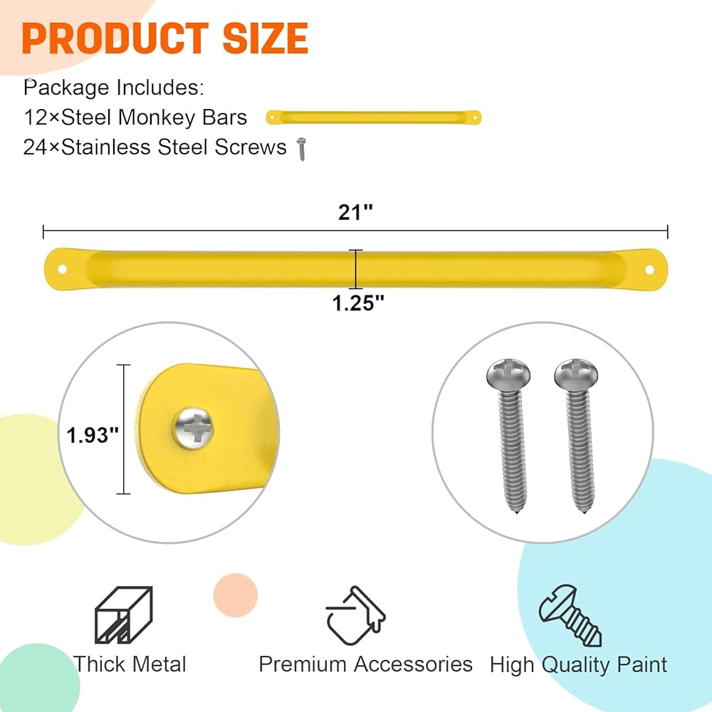مجموعة أرجوحة للعب على شكل قرد مقاس 21 بوصة، مجموعة سلالم للساحات الخلفية للتسلق في الداخل والخارج، أدوات قضبان القرد الفولاذية مع براغي (أصفر، 12 قطعة)