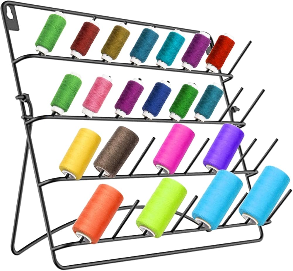 Efficient Thread Organization: Featuring 4 rows of pegs, this rack allows you to organize threads by spool size or color, help you find the right thread color more quickly. The tilted pegs match your posture when holding the spool, making thread retrieval smooth and efficient.
