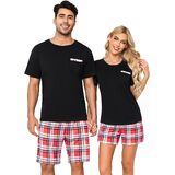 💕【Unique Features】: Short sleeve solid color cotton pajama top, plaid print shorts with elastic waistband fits almost all body shapes, won't twist around in your sleep. You will live in these PJs!