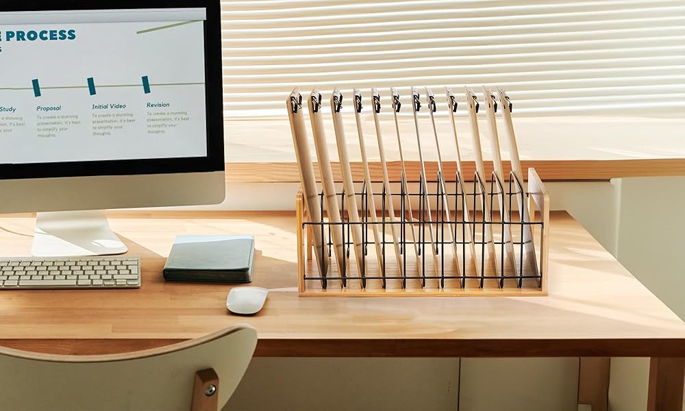 لا يحتاج إلى تجميع: لا يتطلب منظم حامل الحافظة الخاص بنا أي تجميع، فهو جاهز للاستخدام عند فتح العبوة. يتيح لك منظم الحافظة أن تقول وداعًا لسطح المكتب الفوضوي الخاص بك وبدء حياة عمل ودراسة منتجة