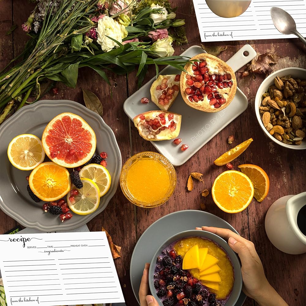 فكرة هدية متعددة الاستخدامات: سواء كانت لحفلات الزفاف، أو حفلات استقبال المولود الجديد، أو تدفئة المنزل، أو ببساطة كهدية مدروسة للطهي أو الطهاة، فإن بطاقات الوصفات اللطيفة والبسيطة هذه تمثل هدية ساحرة وعملية. إنها طريقة جذابة لمشاركة الأطباق العائلية المفضلة أو تجارب الطهي الجديدة.