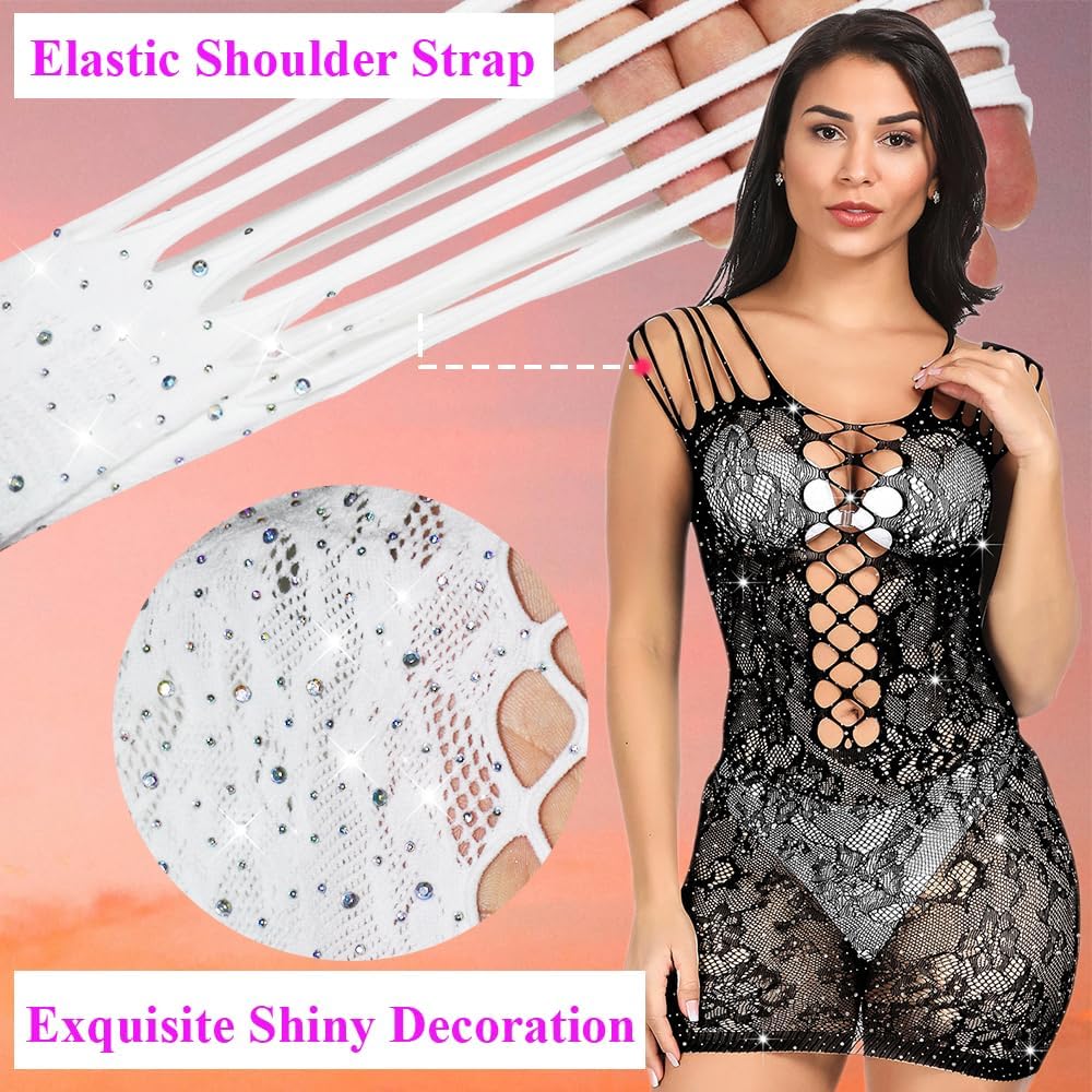 Style: UAREBST Brand Black lingerie for women, black sexy bodysuit for women, black mesh one piece teddy lingerie, babydoll lingerie for women, sexy lingerie for women, fishnet bodysuit, fishnet lingerie for women, rhinestone body suit
