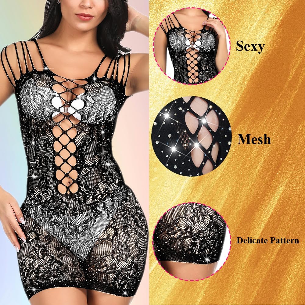 Perfect for Every Sparkling Evening: Slipping into this dazzling semi-sheer fishnet lingerie ensures that you become the center of attention in any setting. With every step, you exude endless allure, drawing the gaze of everyone around you