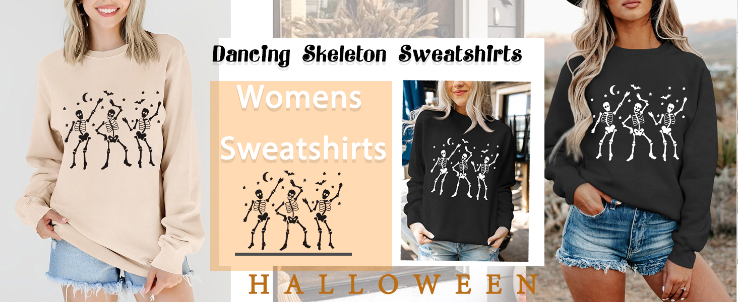 🎃الخامة: سويت شيرت نسائي بهيكل عظمي للرقص في الهالوين مصنوع من مزيج القطن، مريح، مسامي، صديق للجلد. هذه السترات النسائية للهالوين مثالية للارتداء في المنزل أو خارج المدينة في الهالوين.