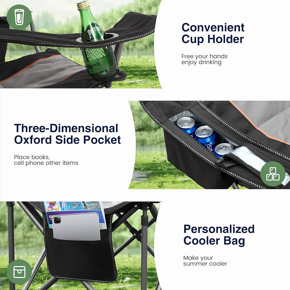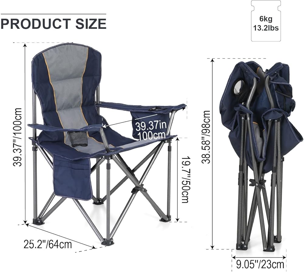 ☆ الأبعاد: مقاس كرسي التخييم كبير الحجم هو 24.8 بوصة عمق × 38.2 بوصة عرض × 39.4 بوصة ارتفاع، والوزن 12.8 رطل. يمكن طيه حتى 9.05 بوصة × 38.58 بوصة فقط. توفر منطقة المقعد الكبيرة مساحة كبيرة لتمدد جسمك، ومبطنة يضمن مسند الذراع راحة هذا الكرسي الكبير. يمكن لهذا الكرسي ذو الذراع التعامل مع الاستخدام الشاق وهو مثالي للأفراد الأكبر حجمًا.