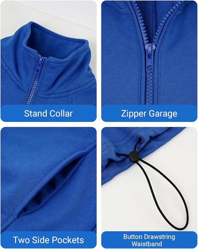 • 【تصميم فريد】سترة بلوفر بياقة واقفة للفتيات، سترات رياضية مبطنة بالصوف للفتيات، كتف منسدل، جيوب كنغر، أكمام طويلة مع فتحات إبهام، تساعد على الحفاظ على أكمامك في مكانها، ياقة بسحاب 1/2، السحاب يعمل بسلاسة، لون ثابت، Y2K ملابس، ناعمة من الداخل، مقاس مريح، بلوزة قصيرة، ملابس مناسبة للخريف والشتاء للفتيات