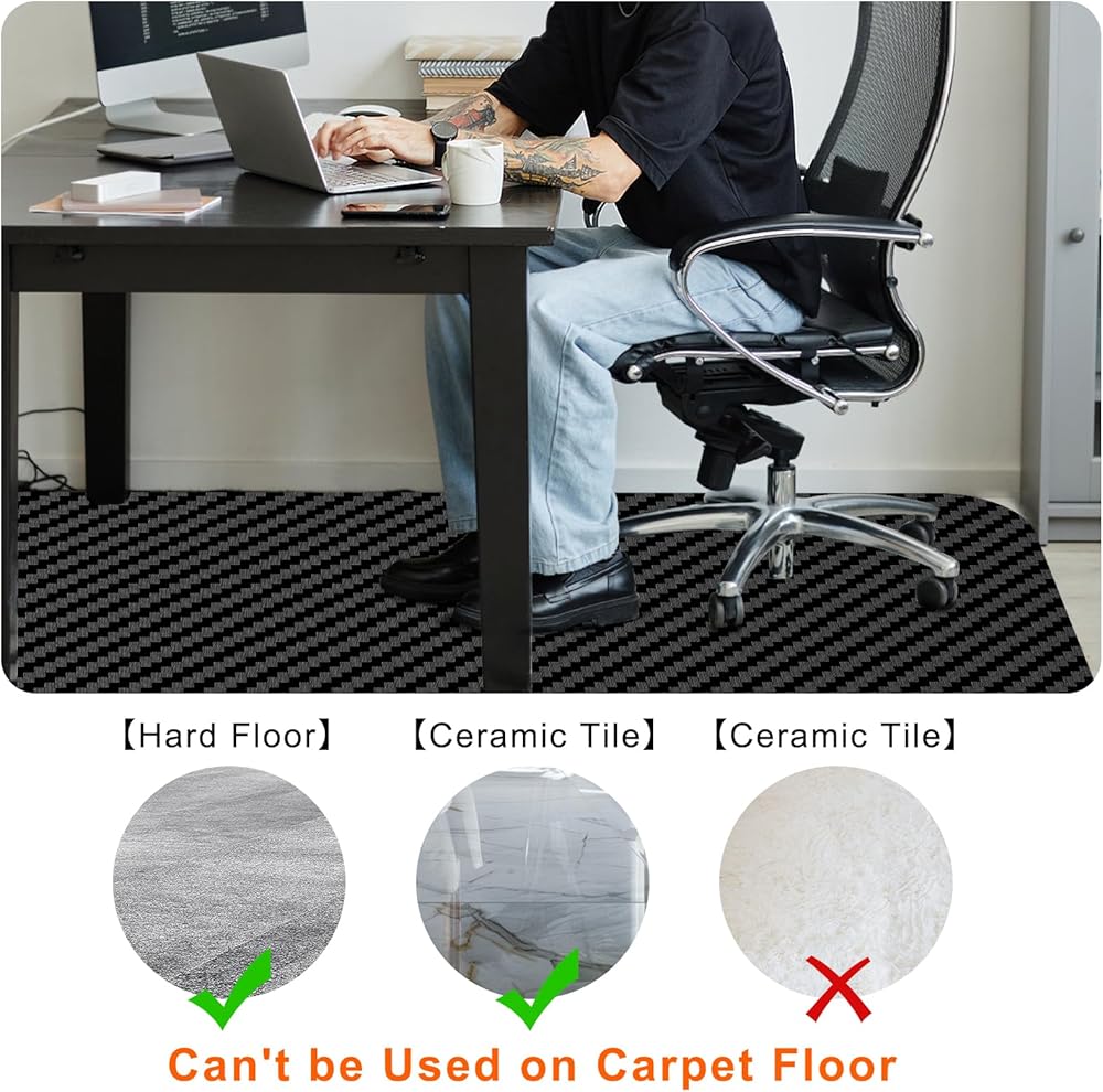 Versatile Use, Precision Fit: Our office chair mat is suitable for hardwood, vinyl, laminate, stone, tile, and concrete floors. It can be precisely cut to ensure a perfect fit in various settings such as offices, hallways, living rooms, and studies. Not suitable for carpeted floors.