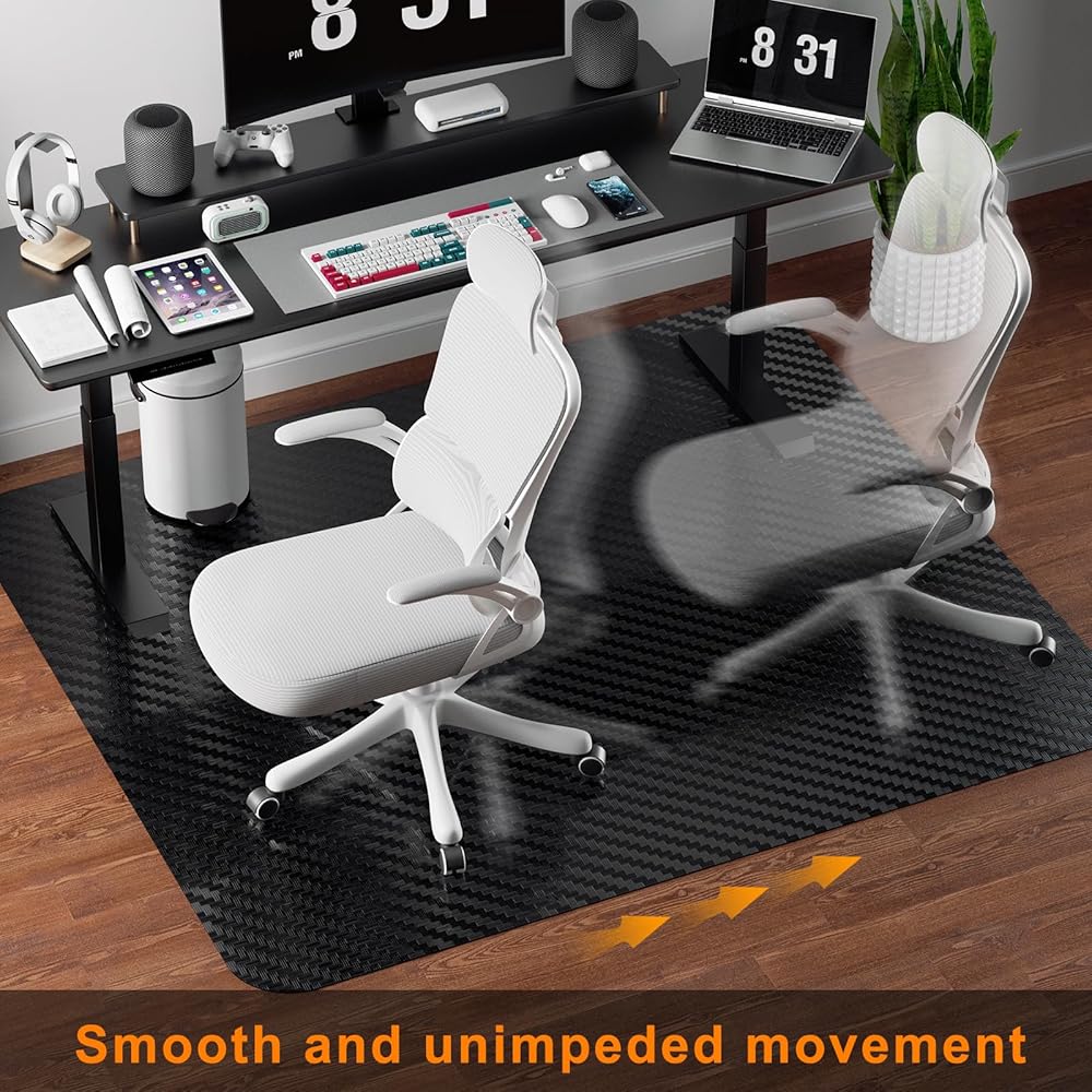 Office Chair Mat for Hardwood Floor: 63 x 51 inches Black Computer Chair Mat Easy Glide Easy Clean Anti-Slip No Curling - Desk Chair Mat Hard Floors for Home/Office