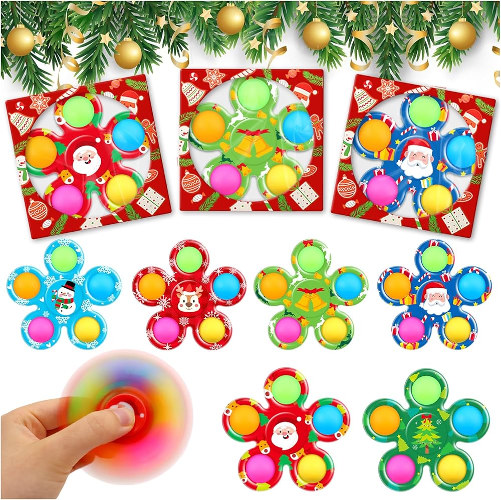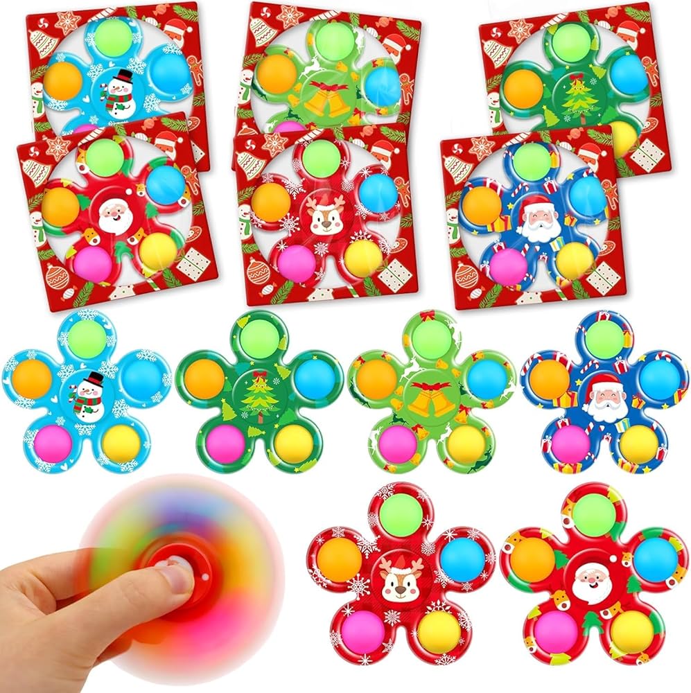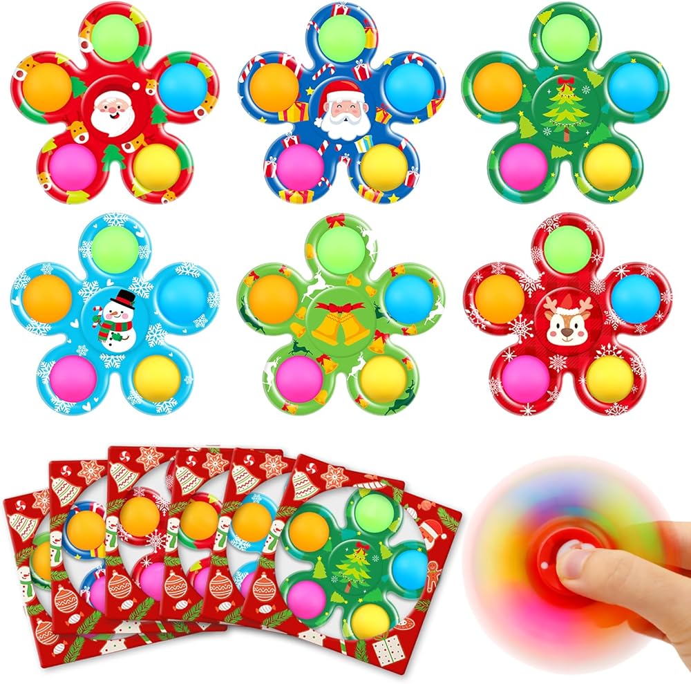 SCIONE 6 قطع عيد الميلاد تململ المغازل للأطفال 4-8 8-12، هدية مفاجأة عيد الميلاد للأطفال الصغار بنين بنات، ألعاب حسية تململ، ألعاب صندوق الجوائز للأطفال تبادل الهدايا في الفصول الدراسية