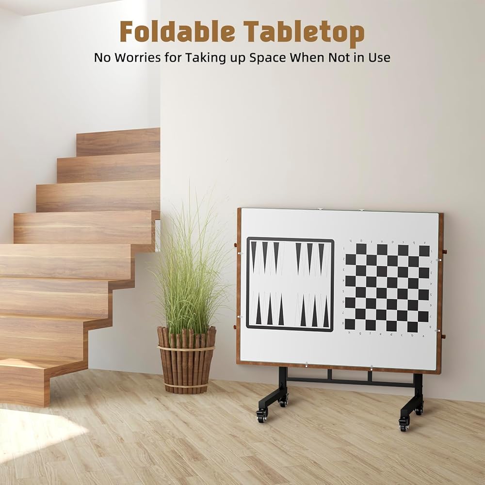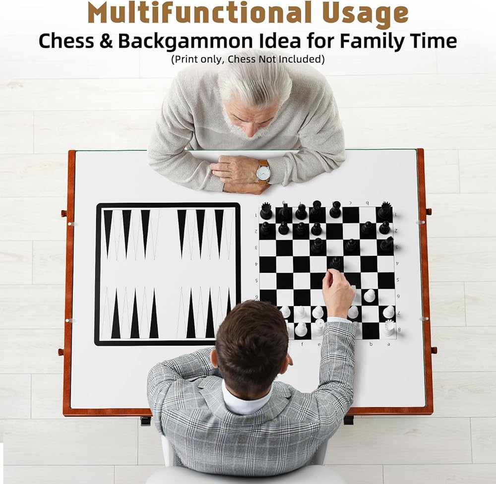 【Wooden Cover with Chess Print】This jigsaw puzzle table comes with a solid wooden cover. One side of the cover is printed with two chess maps so that you can use it as a play table with your family. More useful than other plastic mat, and can better protect your unfinised puzzles from pets.