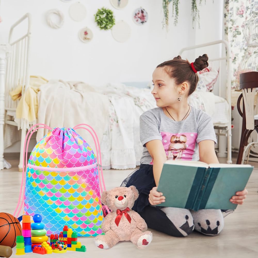 Nidoul Kids Drawstring Bag draw string back bag string backpack Beach Backpack dance bag for girls 4-6 which is lightweight and durable great for Gym and sporting.