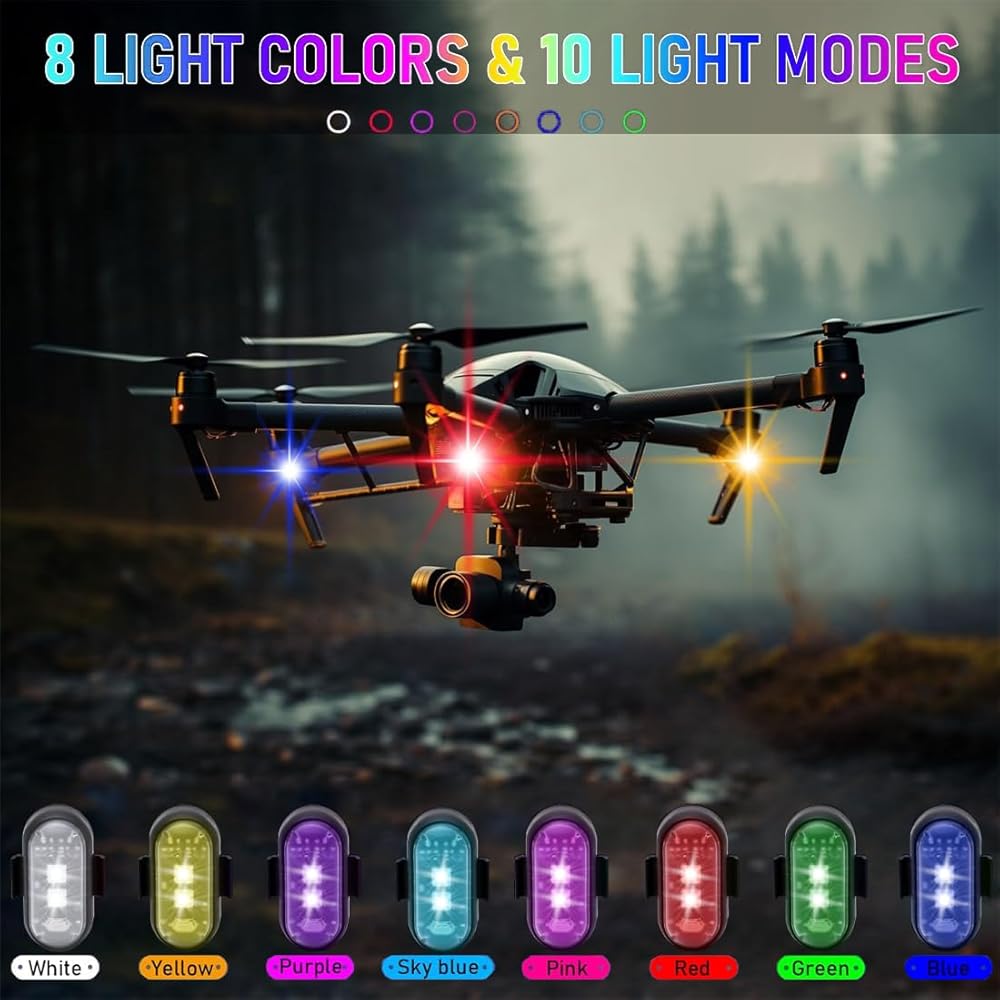 ضوء LED بدون طيار، أضواء LED القوية، 8 ألوان USB مضادة للتصادم، فلاش LED قابل لإعادة الشحن، للطيران الليلي بدون طيار، يناسب DJI Mini 4 Pro، Avata 2، Mini 4k وجميع ملحقات طائرات RC بدون طيار. (4 قطع)