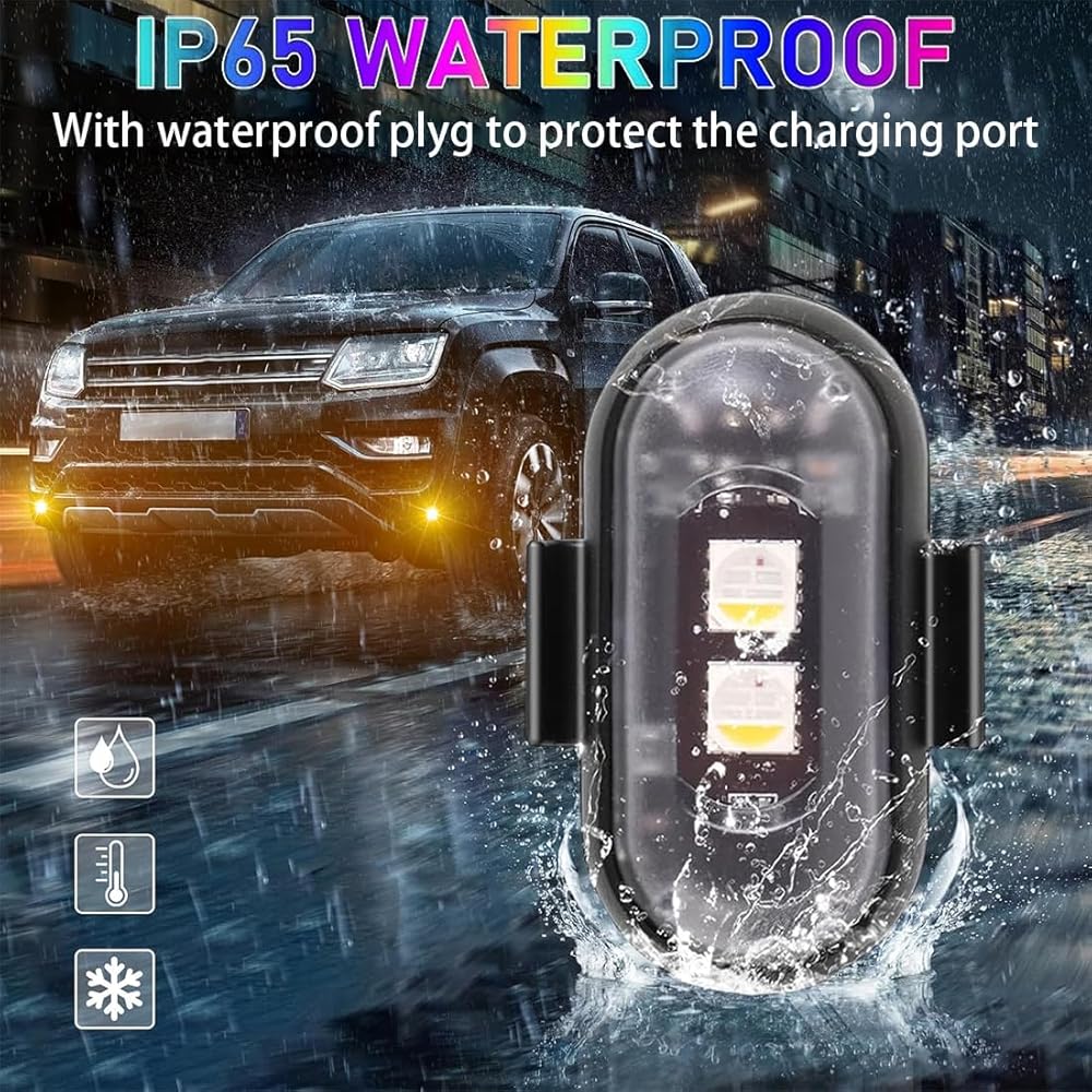 8 ألوان متعددة أوضاع الوميض: توفر المصابيح القوية لدينا 8 ألوان و10 أوضاع: ثابت، وامض سريع، وتنفس، وفلاش تحذير، وميض بطيء، وأكثر من ذلك. يمكن تخصيص أنماط الوميض المختلفة، مما يسمح لك بضبط الأضواء لتناسب الحالات المزاجية المختلفة. والمناسبات.