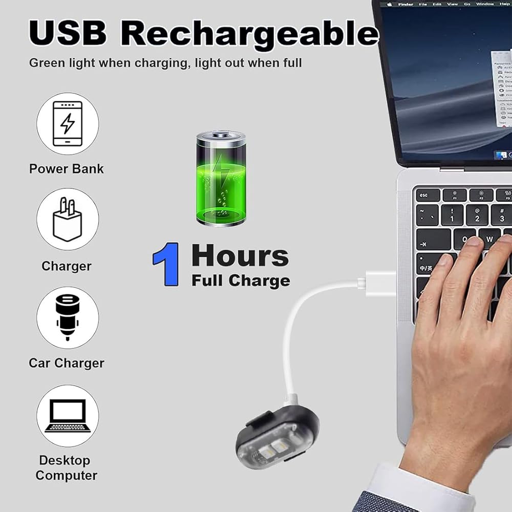 قابلة لإعادة الشحن عبر USB: مع 2 مصباح LED وبطارية قابلة لإعادة الشحن بقدرة 110 مللي أمبير في الساعة، يتم شحن هذه المصابيح القوية اللاسلكية بسهولة عبر كابل USB المتضمن. اشحنها لمدة ساعة واحدة، ويصل عمر البطارية إلى ساعتين في وضع الفلاش البطيء وما يصل إلى 3 ساعات في الوضع الثابت.