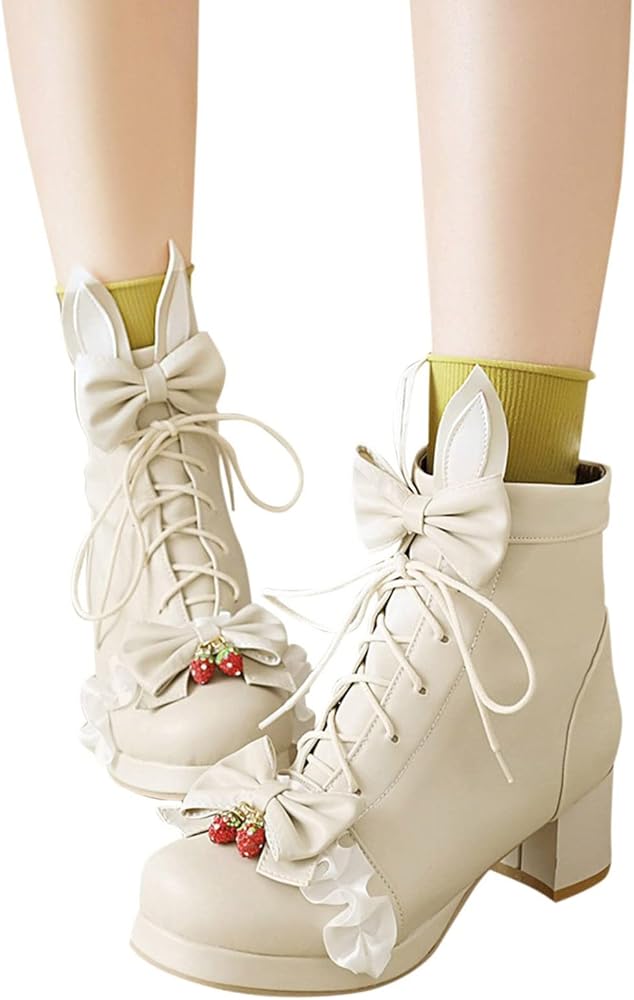 Peqiut راعية البقر أحذية النساء المرأة حذاء من الجلد جلد لطيف القوس عقدة الأحذية الغربية جولة تو كعب مكتنز الدانتيل يصل الجوارب