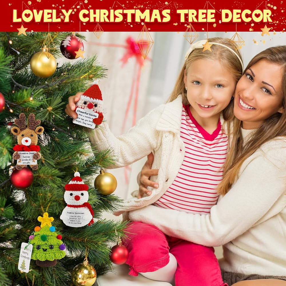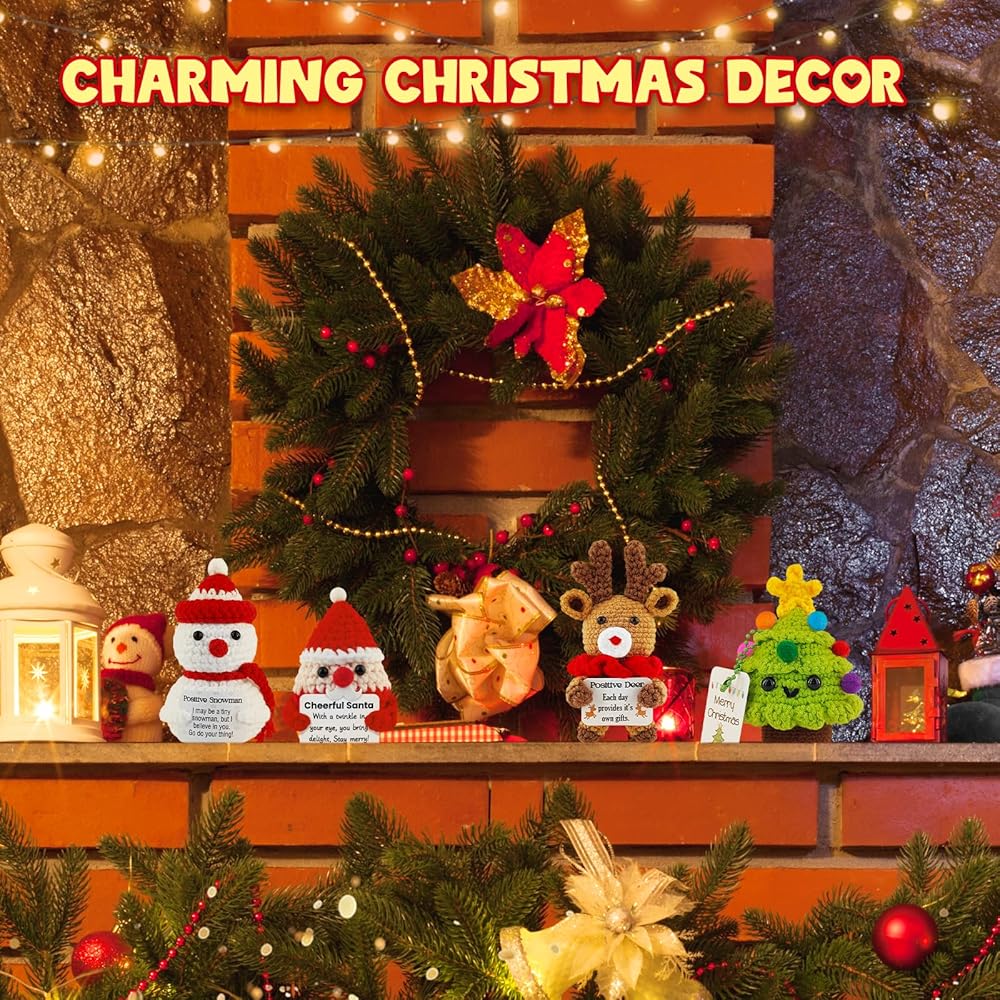 nenalayo 4 قطع دمية كروشيه إيجابية لعيد الميلاد مع بطاقة إيجابية، ألعاب محبوكة لطيفة مصنوعة يدويًا هدايا كروشيه دعم عاطفي للأصدقاء، الحفلات، التشجيع، زينة عيد الميلاد