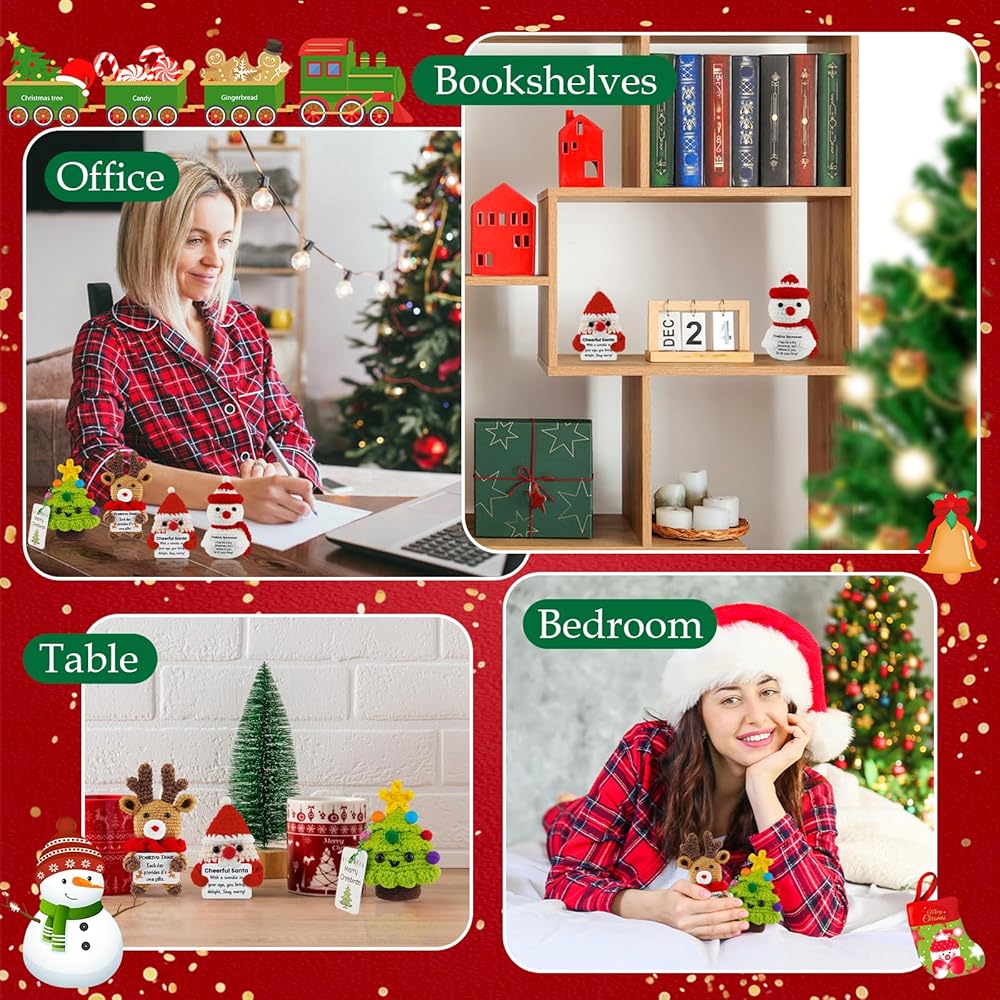 مصنوعة يدويًا بدقة: من نمط الكروشيه المعقد على شجرة الكريسماس إلى التعبير البهيج للغزلان، يتم حياكة كل دمية كروشيه بعناية على يد حرفيين من الصوف عالي الجودة، ويمكن لبطاقات التشجيع إضافة رسائل ممتعة وإيجابية إلى مكتبك وتخفيف ضغوط العمل