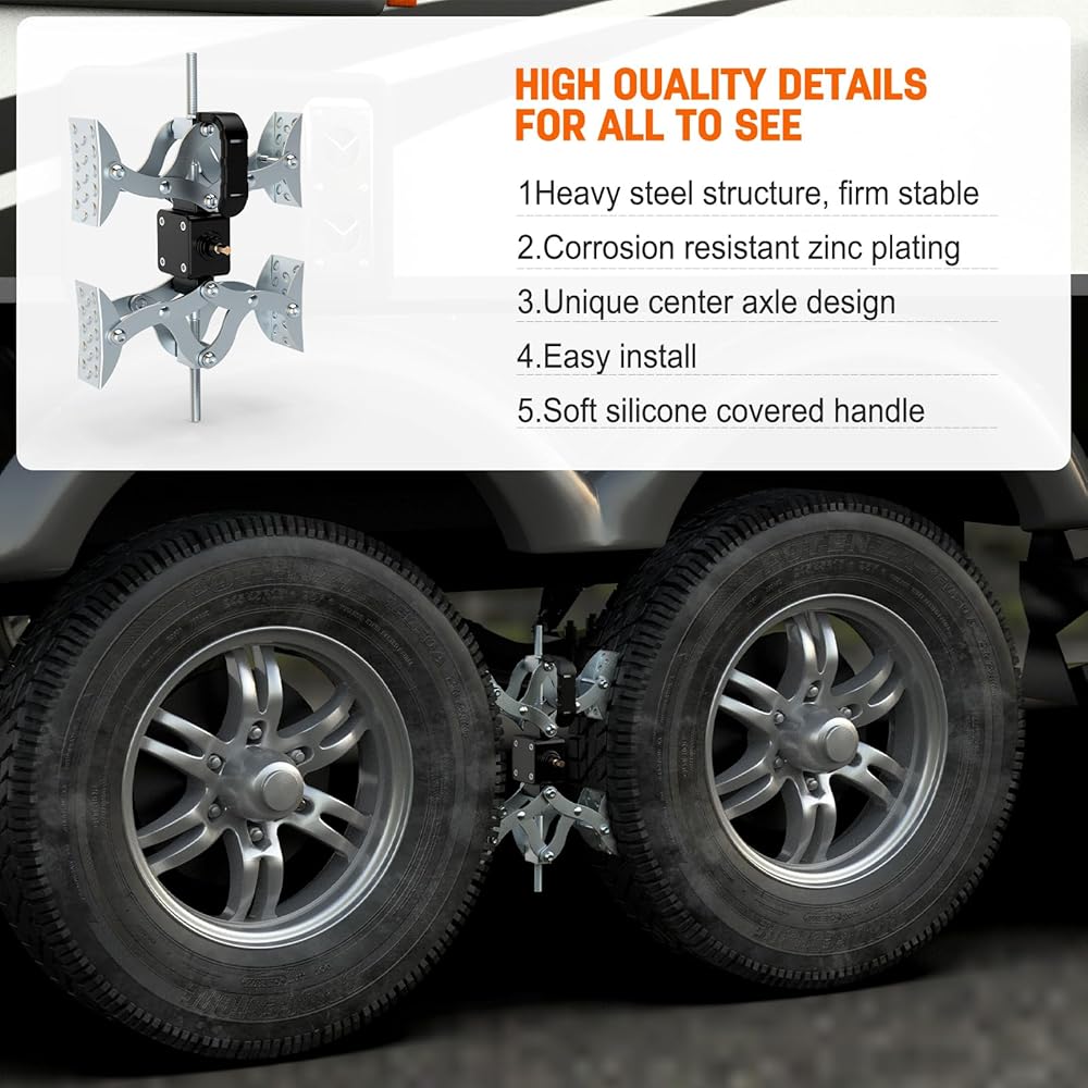 AFTER SALE: The RV wheel chock stabilizer assembly from Sulythw comes complete with after-sales service.If there is any problem,please contact us to solve the problem for you immediately.(Need to measure the size between the tandem tires of your RV before placing the order)