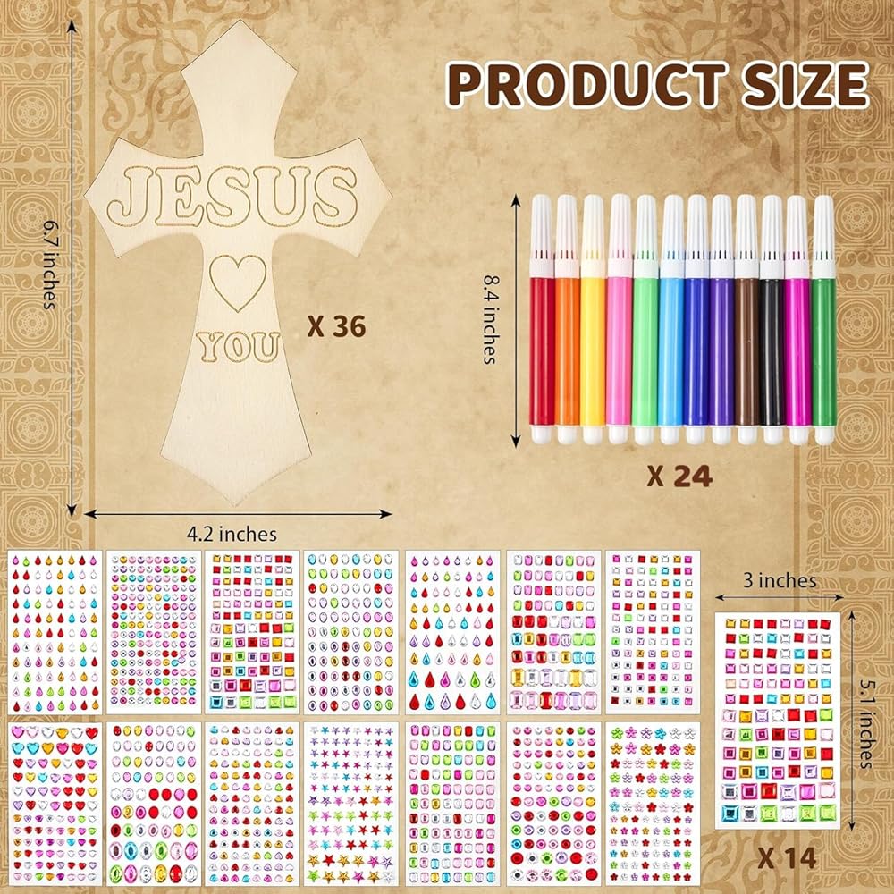• Appropriate Size: the vacation bible school cross crafts size is approximately 6.7 x 4.2 inches, providing ample space for your creative work, the sticker size is approximately 5.1 x 3 inches, and the watercolor pen length is approximately 8.4 inches. This unfinished wood cross set is suitable for any activity and decoration, from Sunday school projects to Easter or Valentine's Day decorations