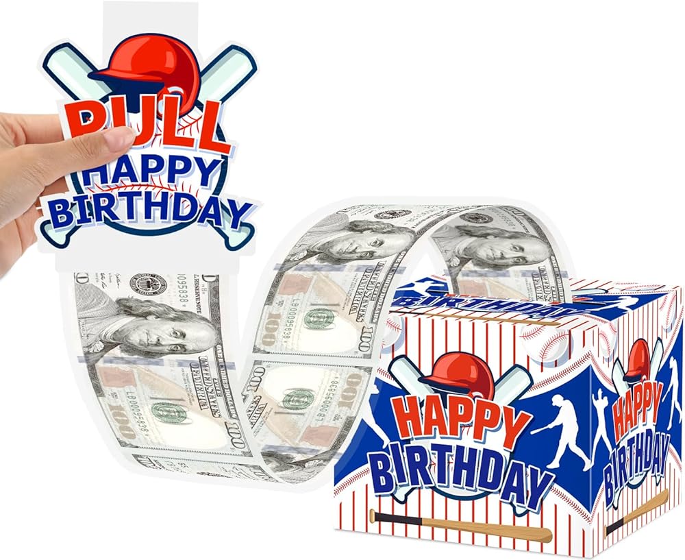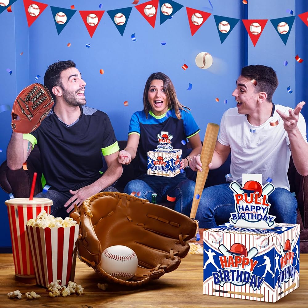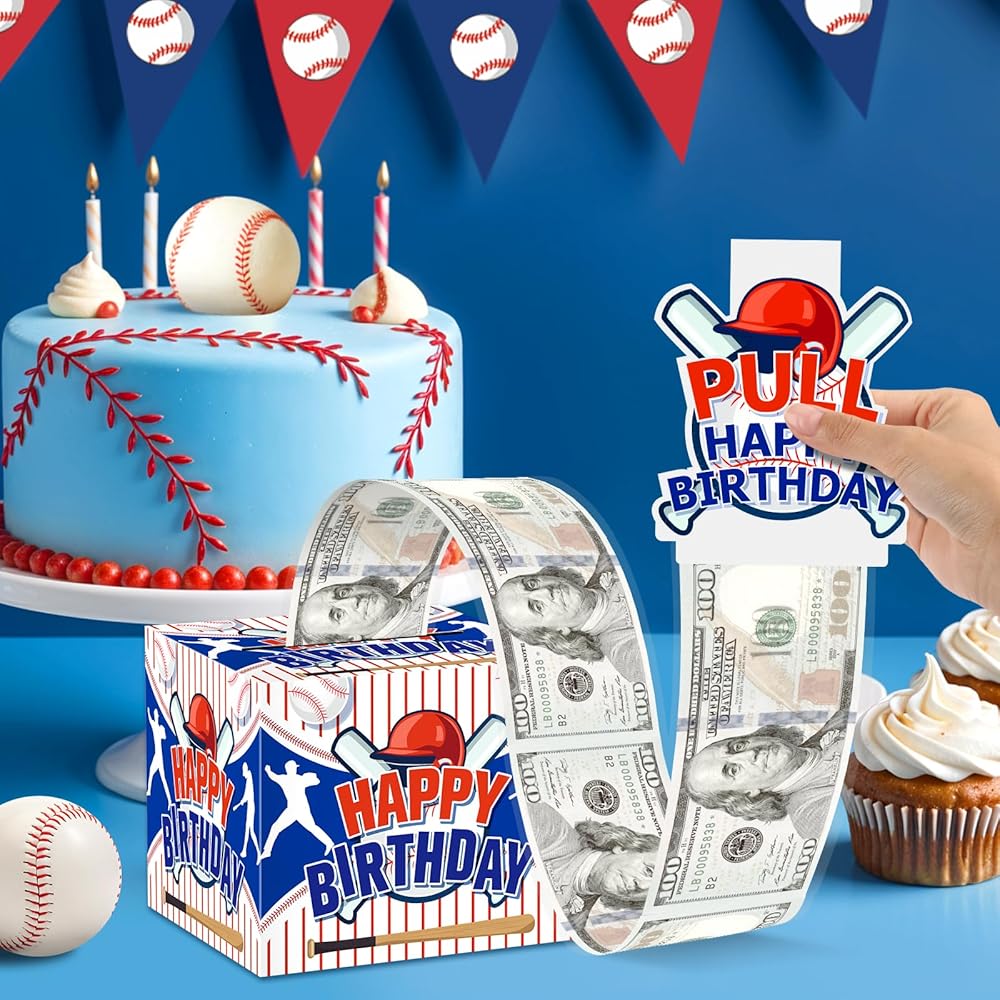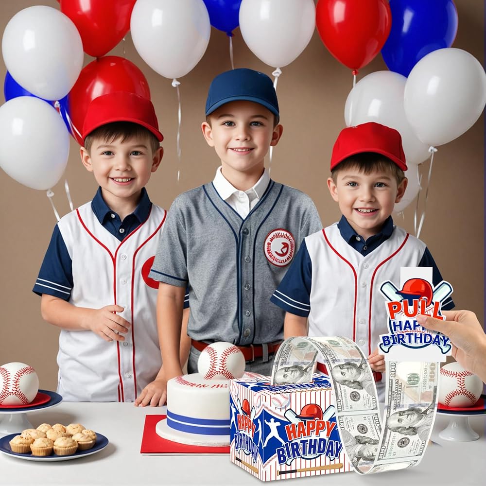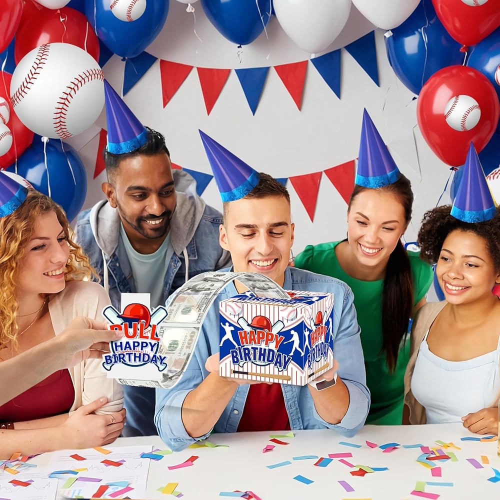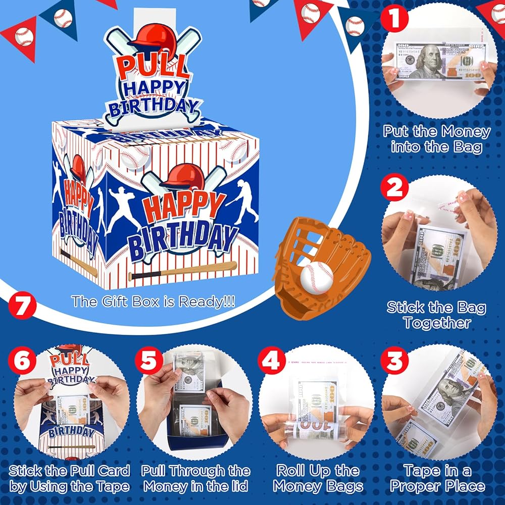Baseball Party Favor: Give family and friends unforgettable moments of a lifetime on the special day of your birthday. the money gift box is the best gift for family and friends. The baseball money gift box are designed in blue color, baseball fans will like these baseball party decor. And the baseball party bags can fit well with your other baseball party decorations. When your friends or family are about to celebrate an important baseball birthday, you can make money as a gift with this fun money pull box that your family will be surprised, excited and love when they receive it.