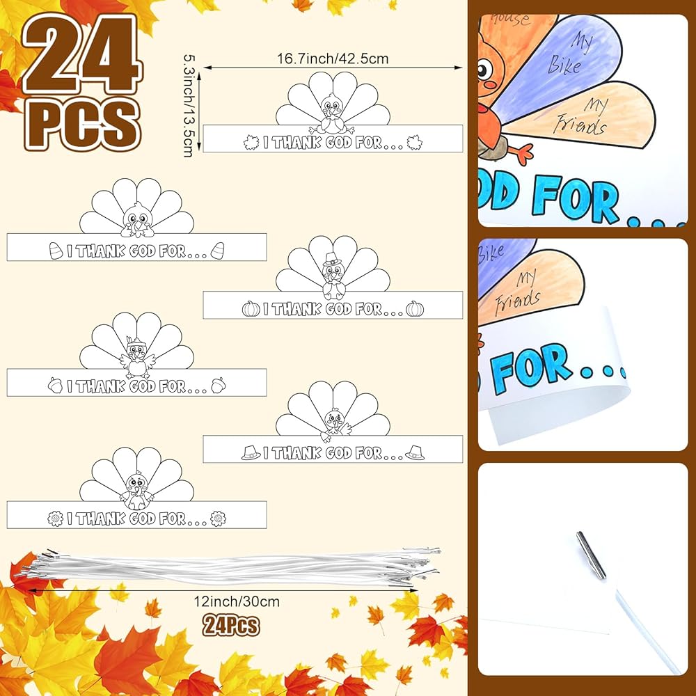 Thanksgiving turkey paper headbands are designed with 6 Thanksgiving classical elements, you can use your imagination to create a chic headband, according to your own preferences, and enjoy the fun of DIY handmade.