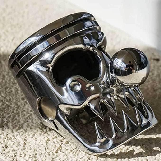 مقبض ناقل الحركة مصنوع من مكبس دراجة نارية، JDM من الفولاذ المقاوم للصدأ على شكل جمجمة مقبض عصا ناقل الحركة للسيارة مقبض رافعة يناسب معظم المركبات اليدوية الأوتوماتيكية (أ)