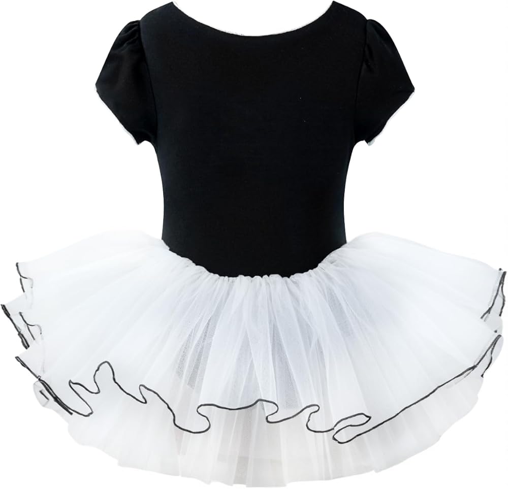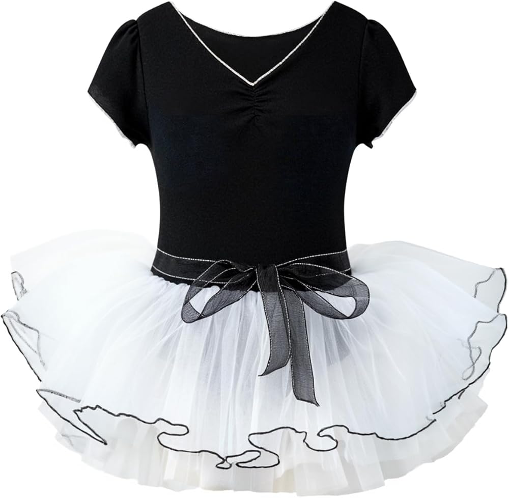 JiAmy الفتيات الباليه ثياب كشكش كم الاطفال فستان رقص التألق توتو تنورة طفل الباليه يوتار الزي الأسود 4-5 سنوات