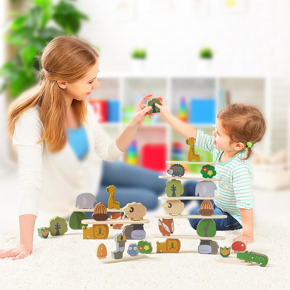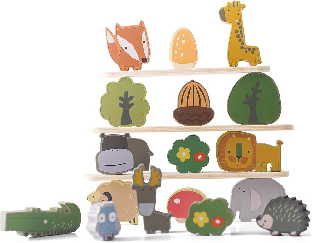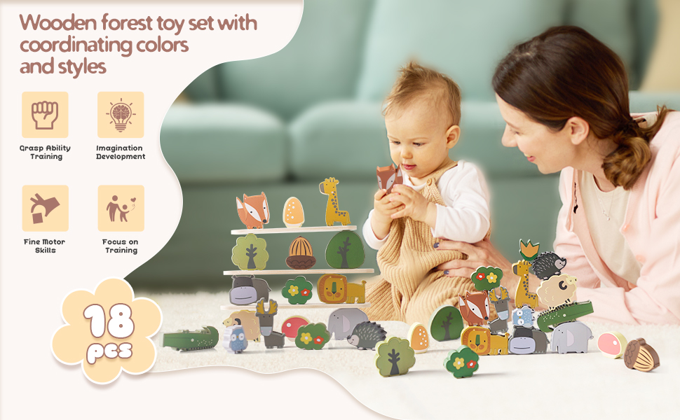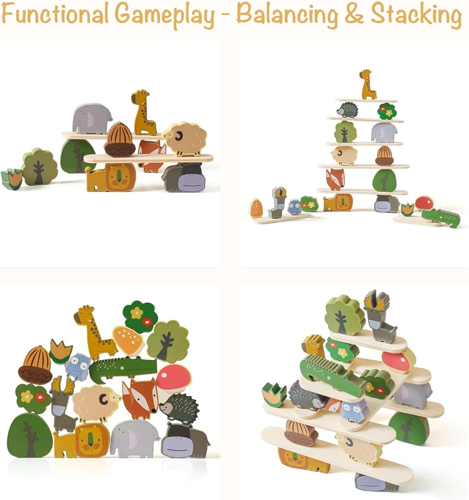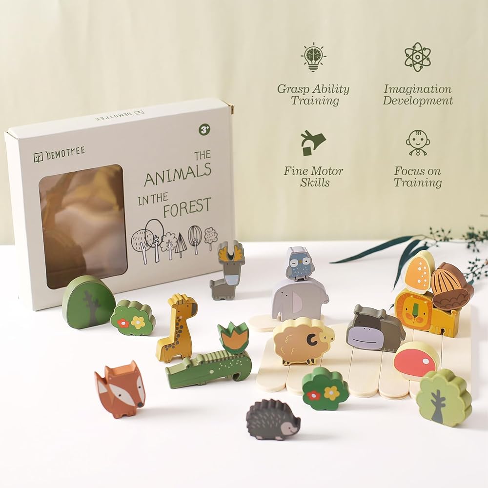 【يبني مهارات متعددة】: اللعب بمكعبات تكديس الحيوانات الخشبية يعمل على تنمية الصبر وتعزيز التركيز ومهارات التفكير والمنطق والقدرات العملية لدى الأطفال. هذه العملية تعزز التحكم العاطفي والمرونة. تساعد المكعبات على التنسيق بين اليد والعين لدى الأطفال الصغار، وتثير الخيال، وتنمي الإبداع مع تحسين المهارات الحركية الدقيقة.