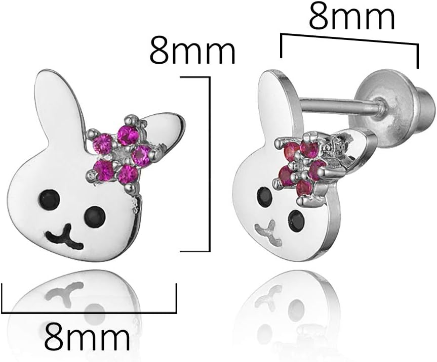 أقراط من الفضة الإسترليني عيار 925 مطلية بالروديوم ومرصعة بالزركونيا المكعبة على شكل أرنب للفتيات الصغيرات