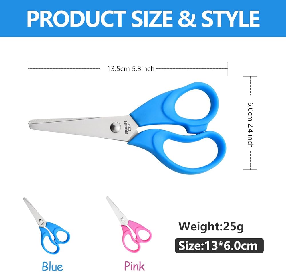 ANJOBIBI Kids Scissors, Blunt-Tip Scissors Stainless Steel Blades & plastic handle, Scissors for School or Crafting, Back to School Supplies,13.5cm, 2 Pack(Blue+Pink)