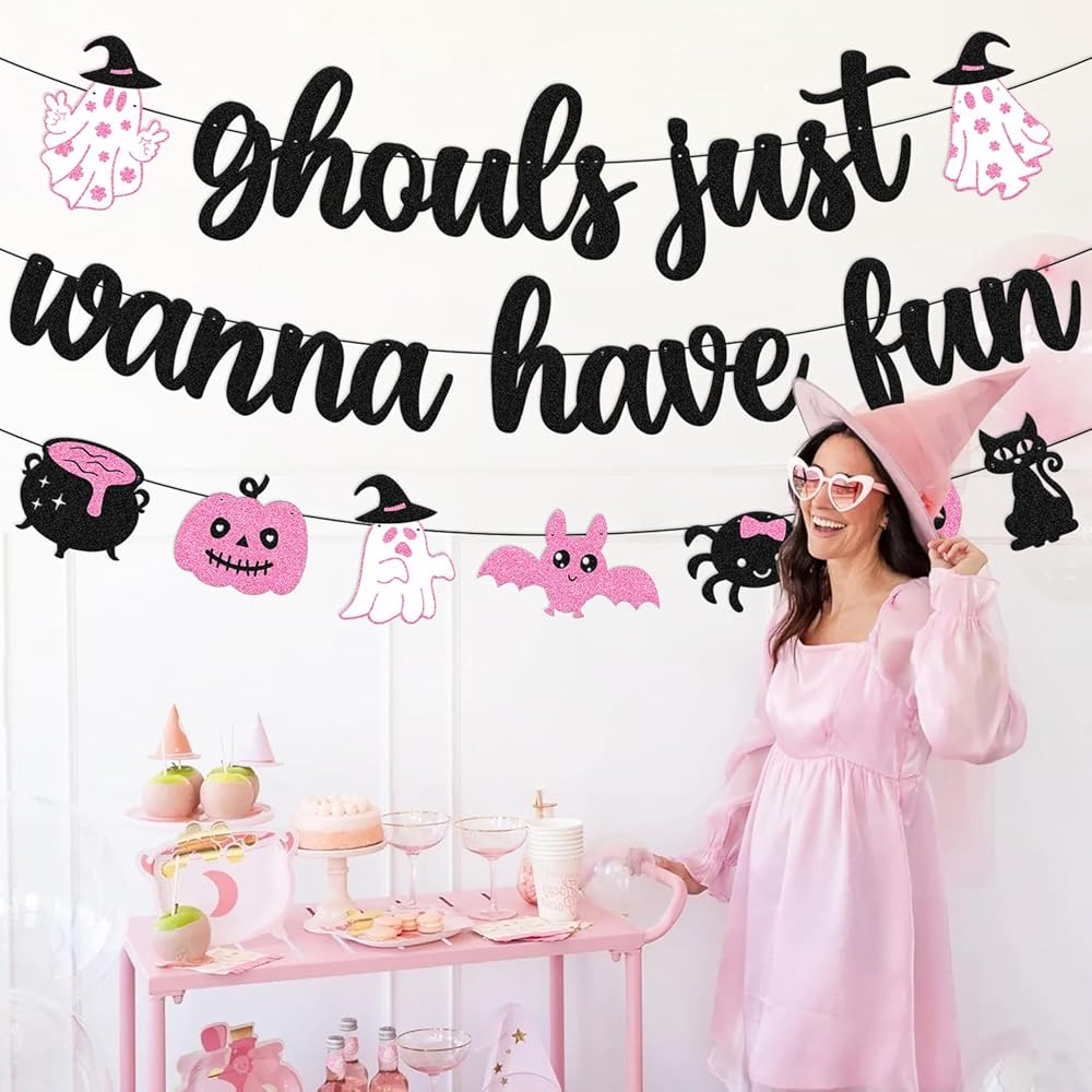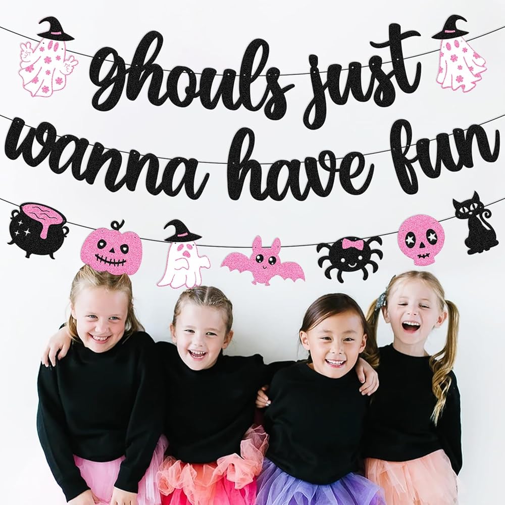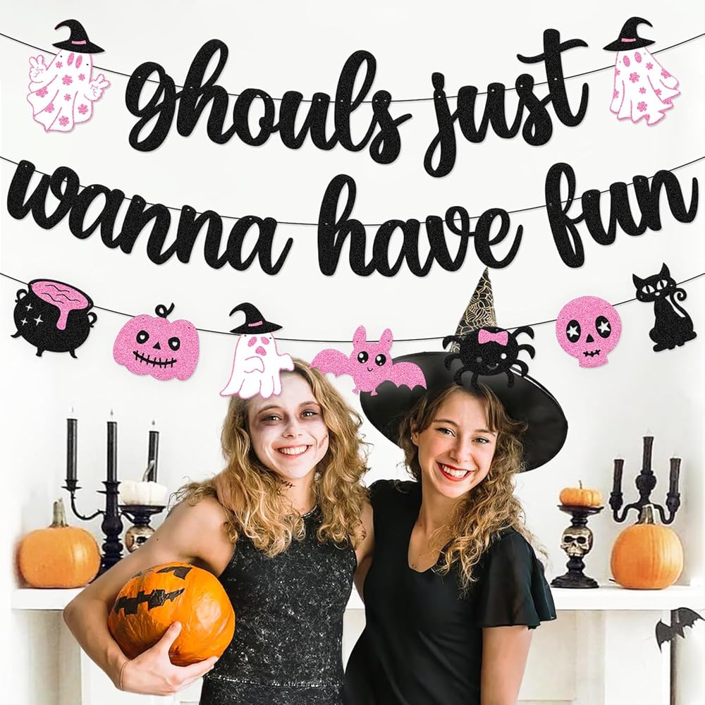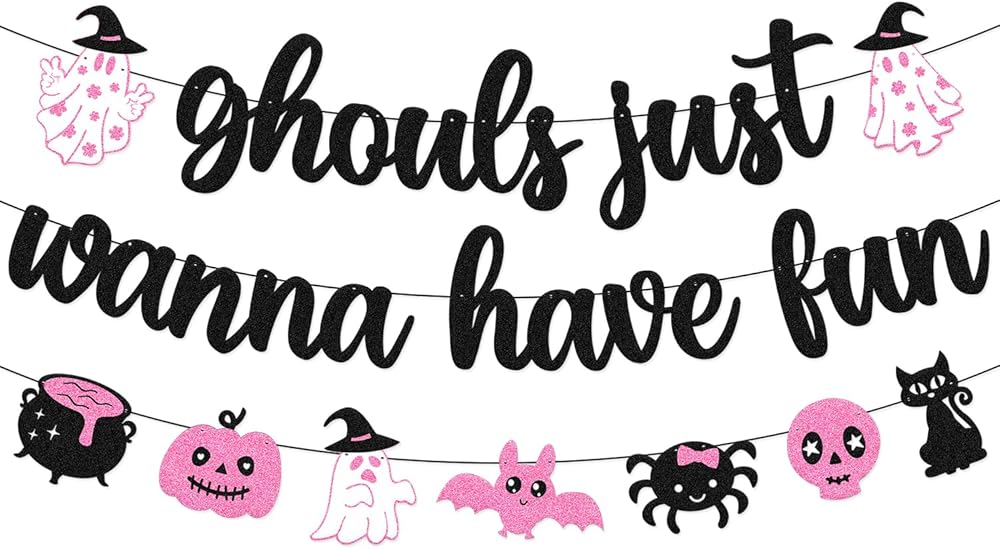 Festive Banner: This 'Ghouls Just Wanna Have Fun' banner adds a spooky yet playful touch to any Halloween party or decor.