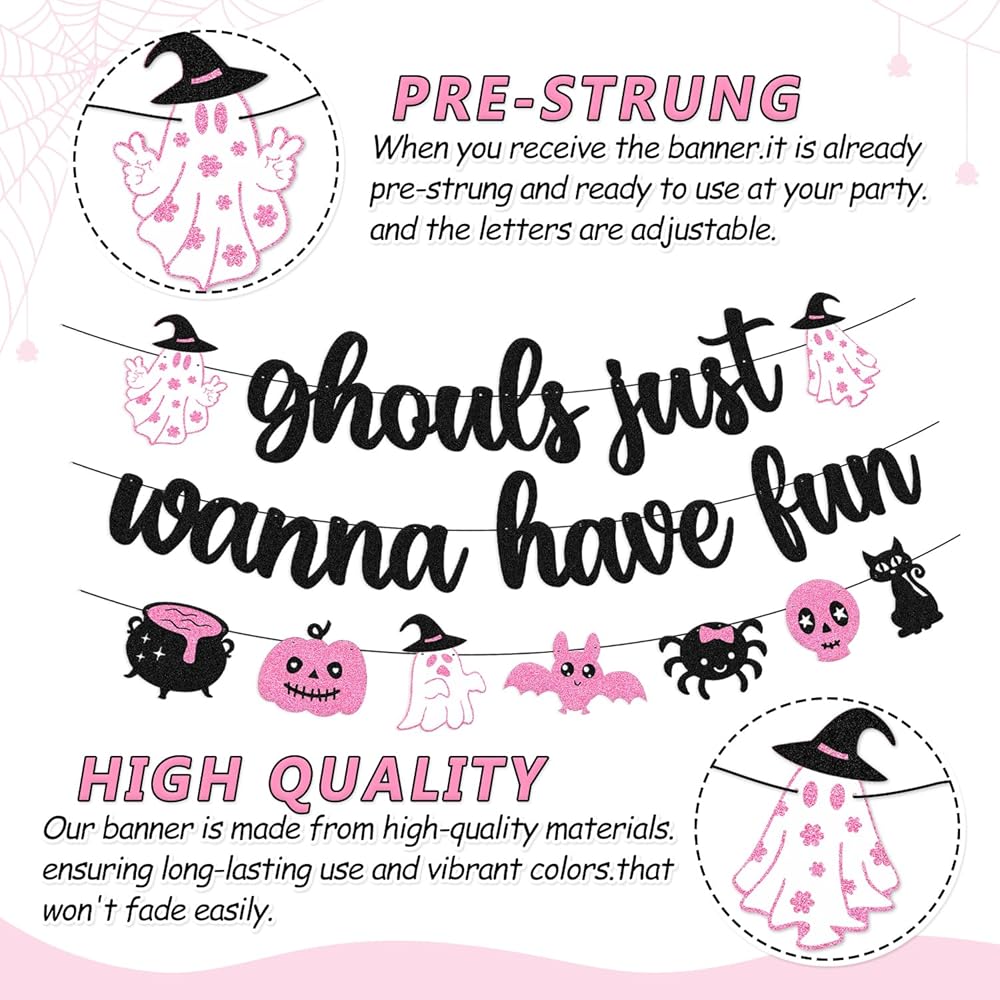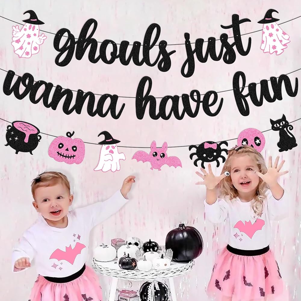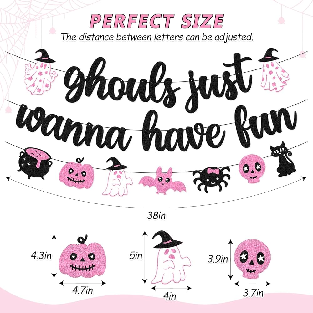 Festive Banner: This 'Ghouls Just Wanna Have Fun' banner adds a spooky yet playful touch to any Halloween party or decor.