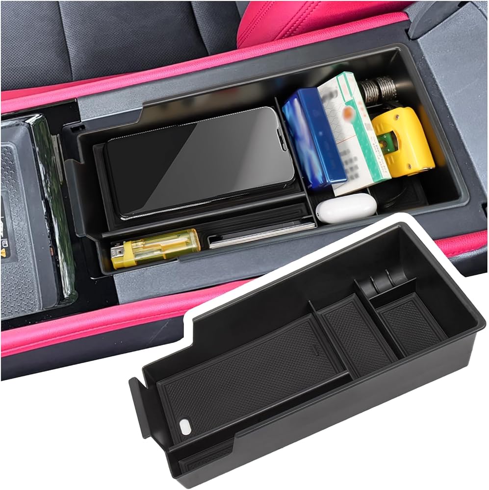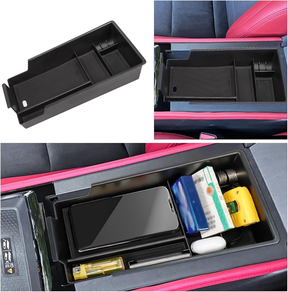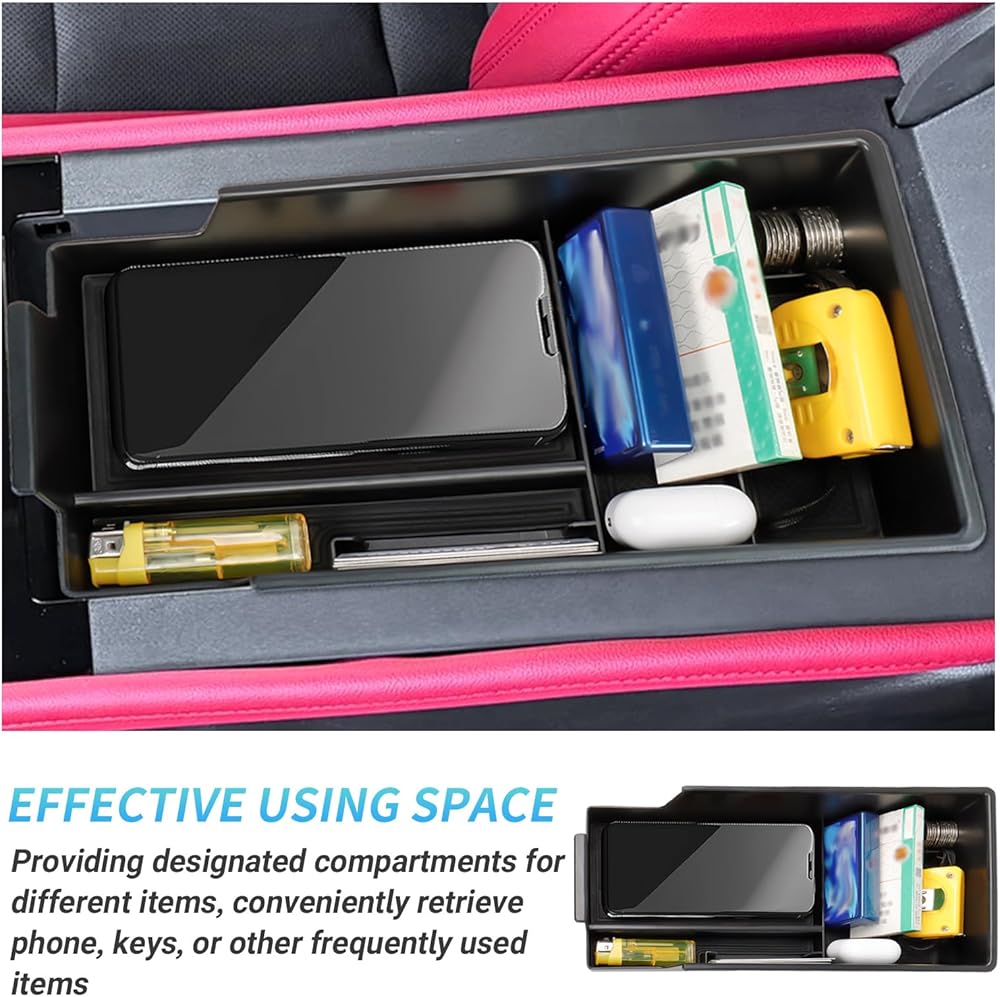 مطابقة فعالة: يناسب المنظم تخزين مسند ذراع سيارتك بسلاسة؛ تمامًا مثل المعدات الأصلية؛ لا يؤثر على غطاء مسند الذراع الخاص بك عند الفتح والإغلاق اليومي