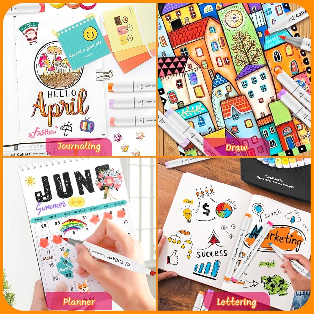 • قبعات مرمزة بالألوان وحقيبة إضافية: تسمح الأغطية المرمزة بالألوان بسهولة التنظيم وتحديد الألوان بسرعة. التصميم المريح يجعل العمل مع هذه الأقلام سهلاً لفترة طويلة. مجهزة بحقيبة حمل سوداء جميلة الشكل ومثالية للسفر والتخزين.