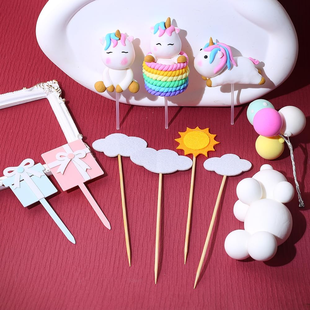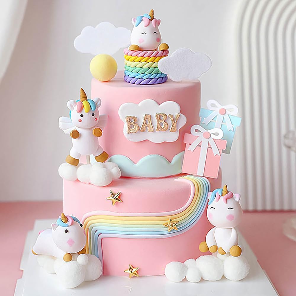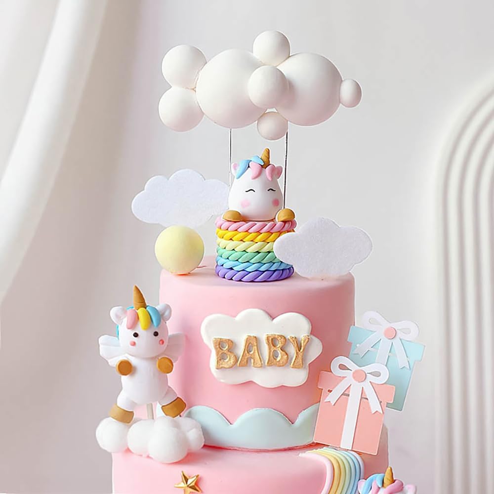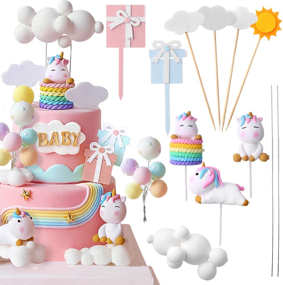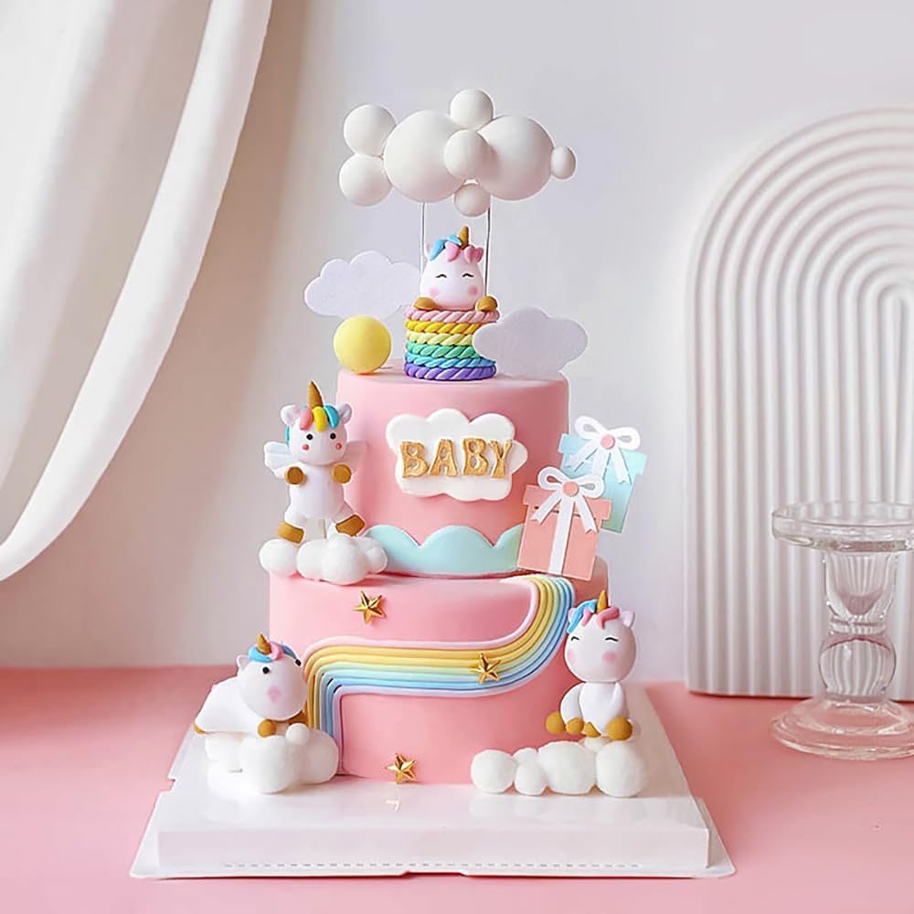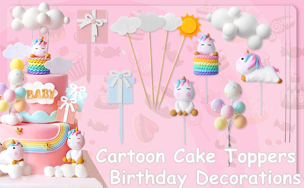 الكرتون عيد ميلاد سعيد كعكة القبعات العالية للفتيات الأولاد زينة عيد ميلاد لطيف واحد قرن الحصان سحابة بالون كعكة توبر الطفل دش كعكة القبعات العالية حزب كعكة ديكور كعكة تزيين مجموعة لوازم، 13pcs